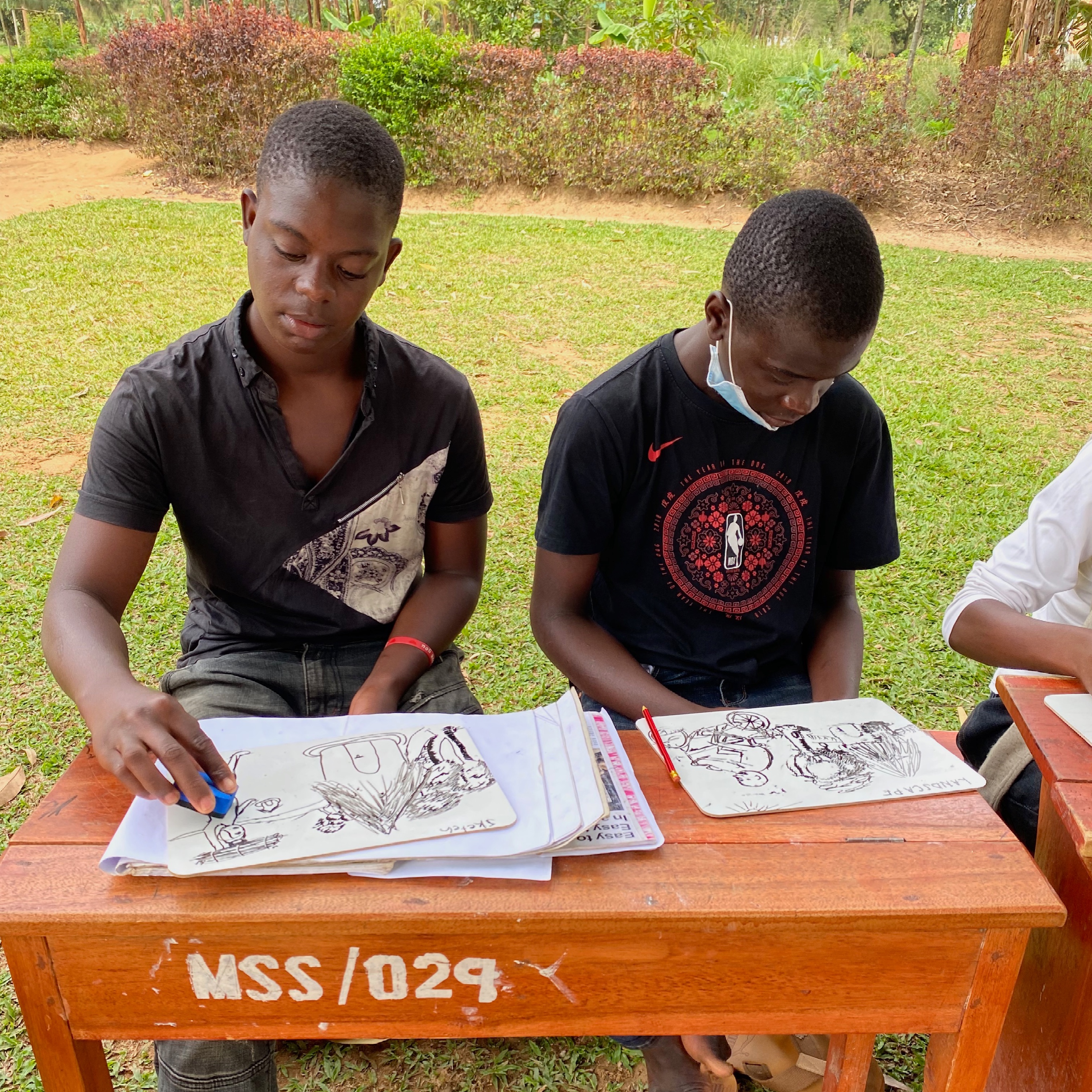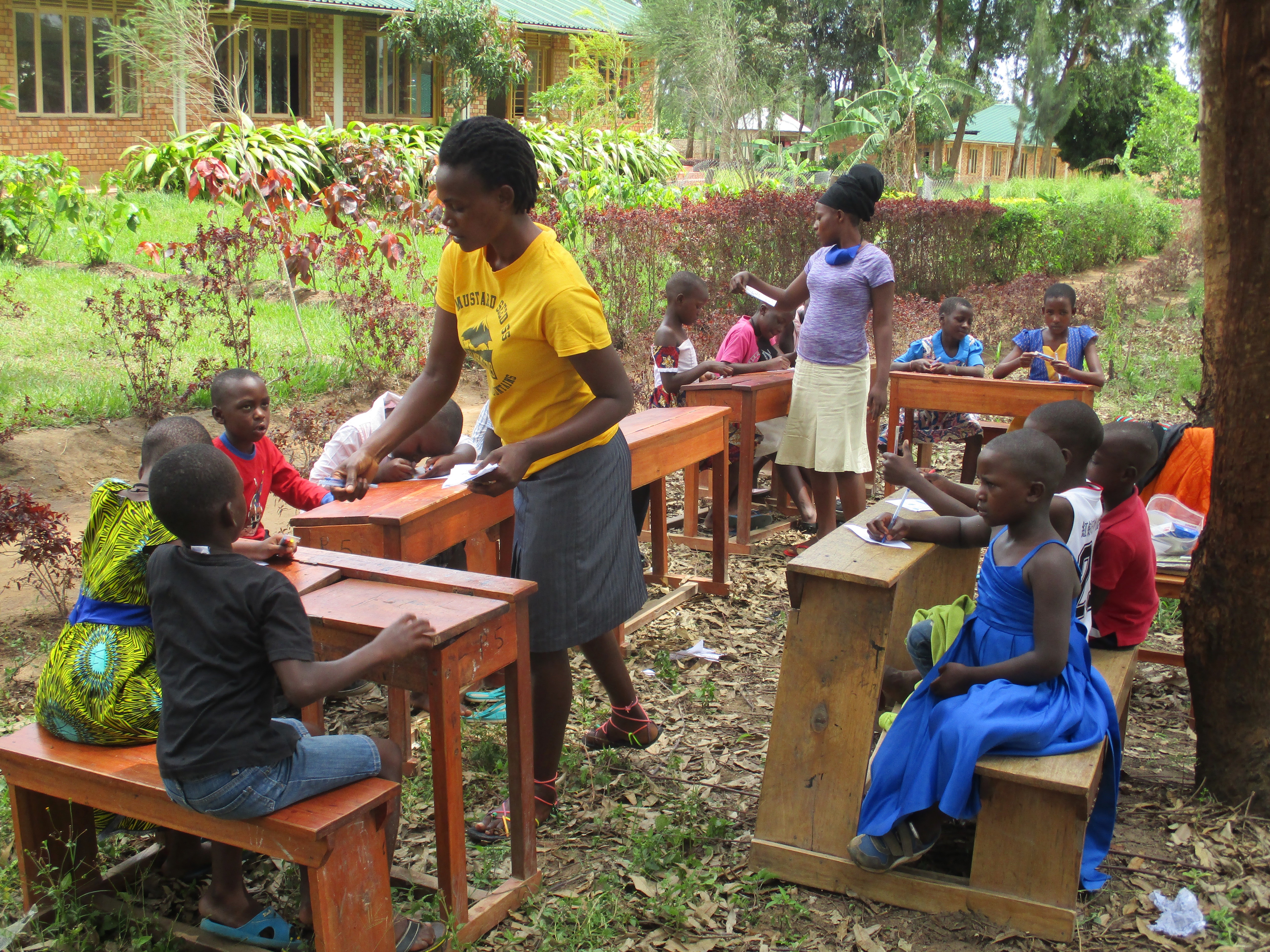 Some of the specifics: -The most prevalent sentiment expressed by teachers was gratitude. -The Mustard Seed staff told me: "Others are suffering, but we are okay!" -Ugandan partners pitched in to make things as good as possible during school closures. -Students are happy to be at school with friends and teachers, even if only one or two days a week. -My good health, safe travels, and small joys of being in the Pearl of Africa. -A 'new' school van, which I had the pleasure of driving –- without mishap. -A new 'cafe' in town that serves delicious chicken and chips. -Lovely weather – neither too much rain nor too much sun. -A chance to reconnect with four of our Pioneer Class who are now proud university students. -Attending two introductions and a wedding, wearing the same style dress that real Ugandans wore. (See photo below.) -The heartwarming smiles when giving out more than 100 envelopes to children from sponsors. -Students 'on task' writing postcards to American friends and sponsors and coloring pages with encouraging scripture verses. |