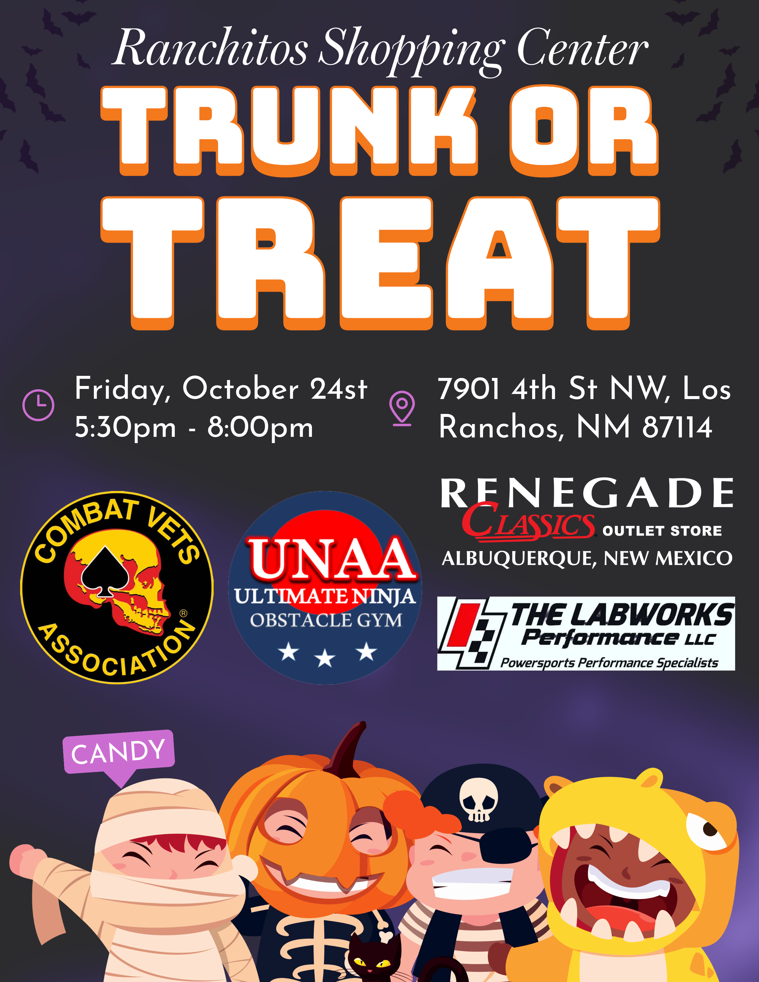 Come join us for our first ever Trunk or Treat! Lets show the kids how awesome the biker community is! Pull out the hot rod or bring the bike and bring lots of candy to pass out to the kids!