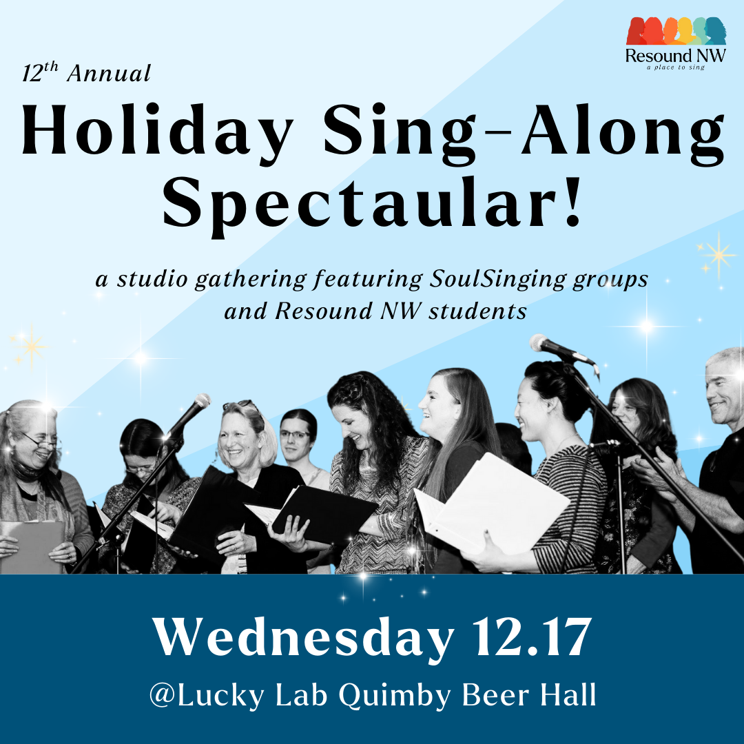 Wednesday December 17th Join us for our 12th annual Holiday Sing-Along Spectacular! This is a joyous, music-filled event featuring performances from Resound NW students, staff, and SoulSinging groups, and plenty of opportunities for you to join us in singing all your holiday favorites!