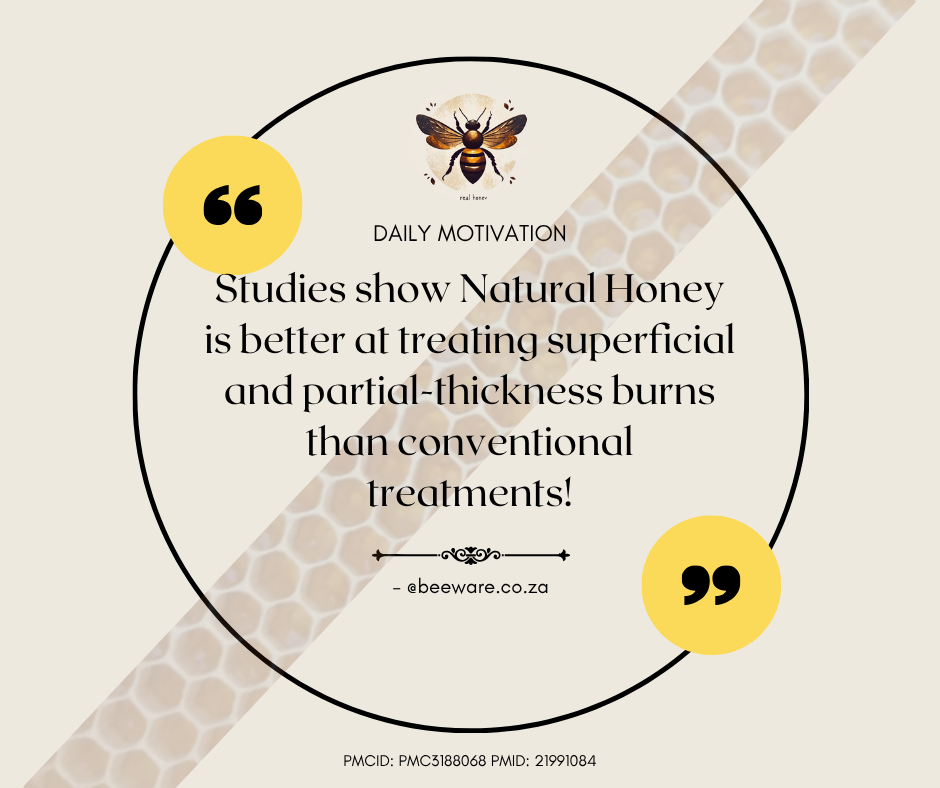 Bottom line: Natural honey is the best treatment for superficial and partial-thickness burns. It applies to wounds too by the way! |