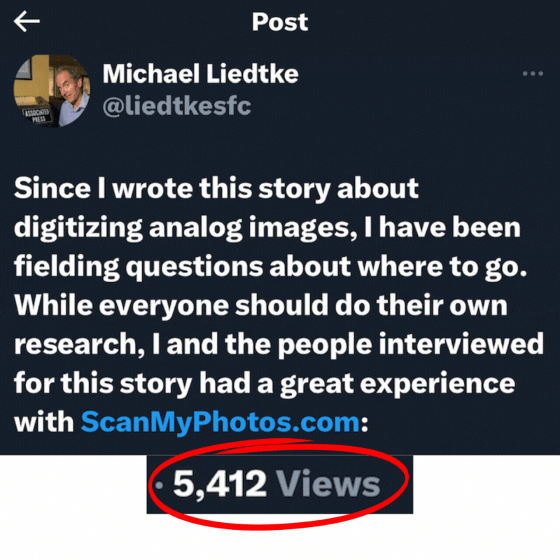 The AP reporter's updated message is poised to ignite a spark in many to digitize their collection of photo snapshots. By recommending ScanMyPhotos and highlighting the positive experiences shared by those interviewed, the reporter adds a level of credibility and trust to the endorsement. This validates the photo preservation work we have been doing since 1990 - digitizing one billion pictures - and solidifies our reputation as your reliable scanning service. |