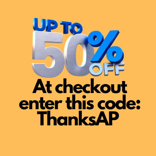 BONUS: Save up to 50% on your next order today. At checkout, enter this code: ThanksAP