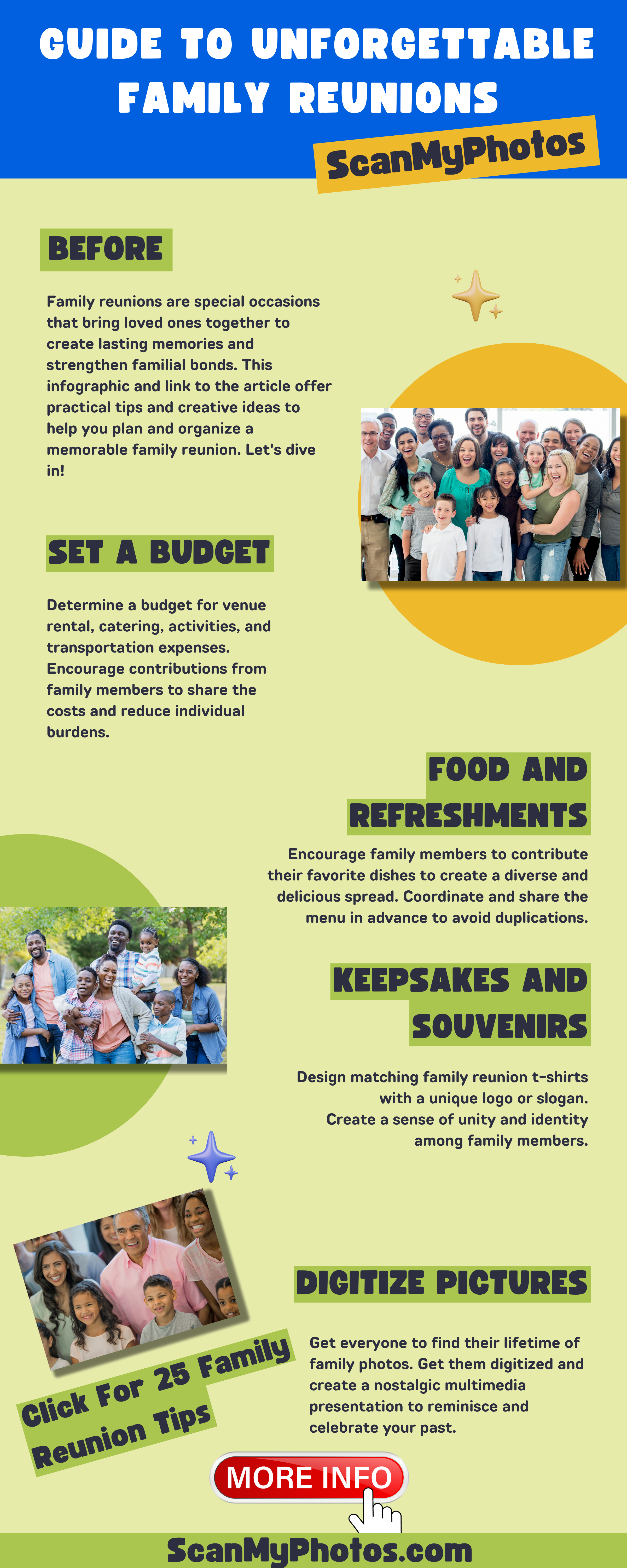 Family Photo Slideshow: Compile a collection of family photos, digitize and create a multimedia slideshow to be displayed during the reunion.