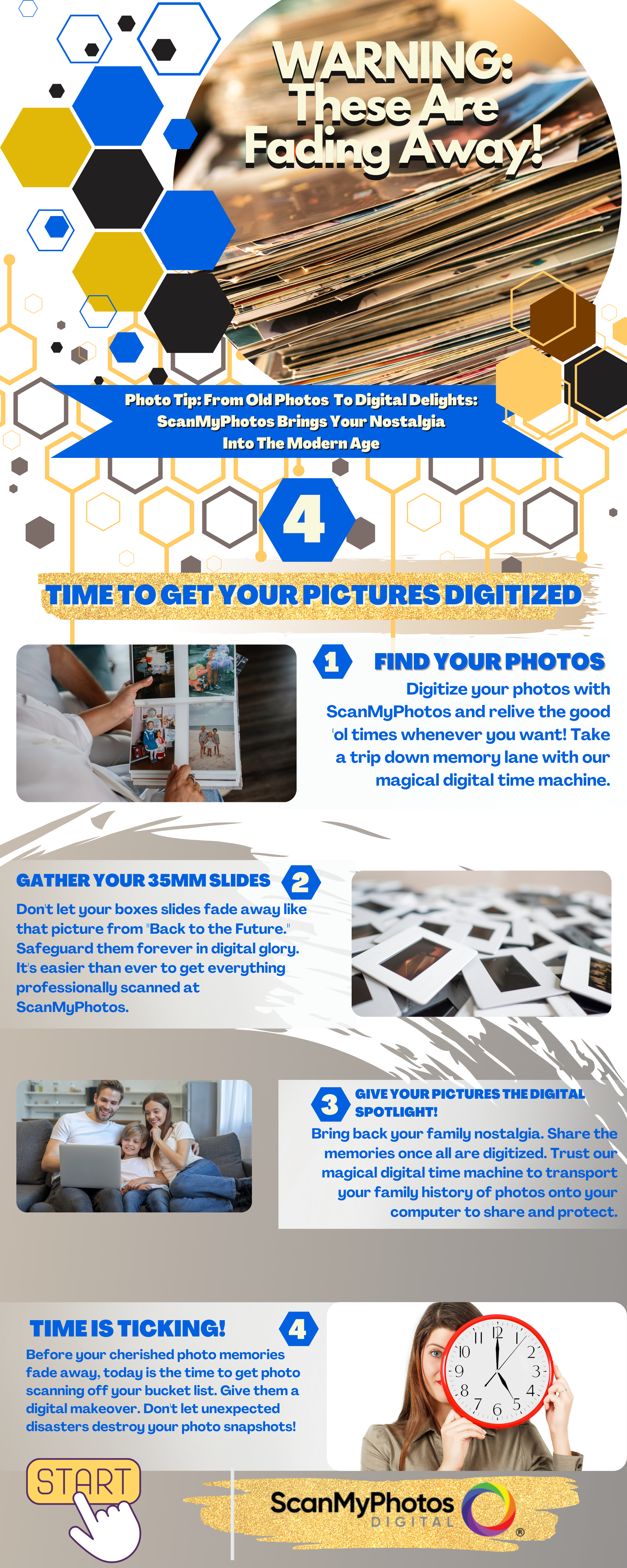 | | Unleash the Magic: Preserve Your Timeless Photo Memories! Tick-tock, the clock keeps ticking, but fear not! Let us work our digital time machine magic and safeguard your picture-perfect photo moments for a lifetime of joy. Ready to dive into nostalgia? Don't wait. Digitize all before your precious photos, slides, and home movie film memories slip away! Update: The newest photo-sharing app is Instagram's THREADS. It's the ultimate place for nostalgia! Once your archives are scanned, you can easily upload your favorite pictures from decades past to share on the widely popular social platform. | | | | | | | | | | | | | | |