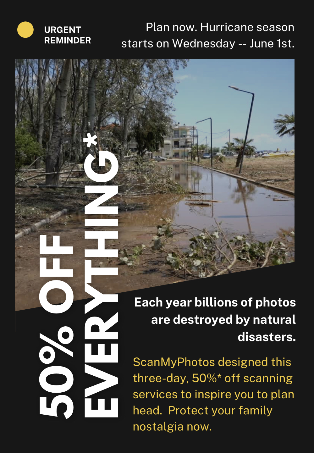 Before a hurricane and its storm surge, digitize your analog photo snapshots, slides, film negatives, and home movies to protect family nostalgia. |