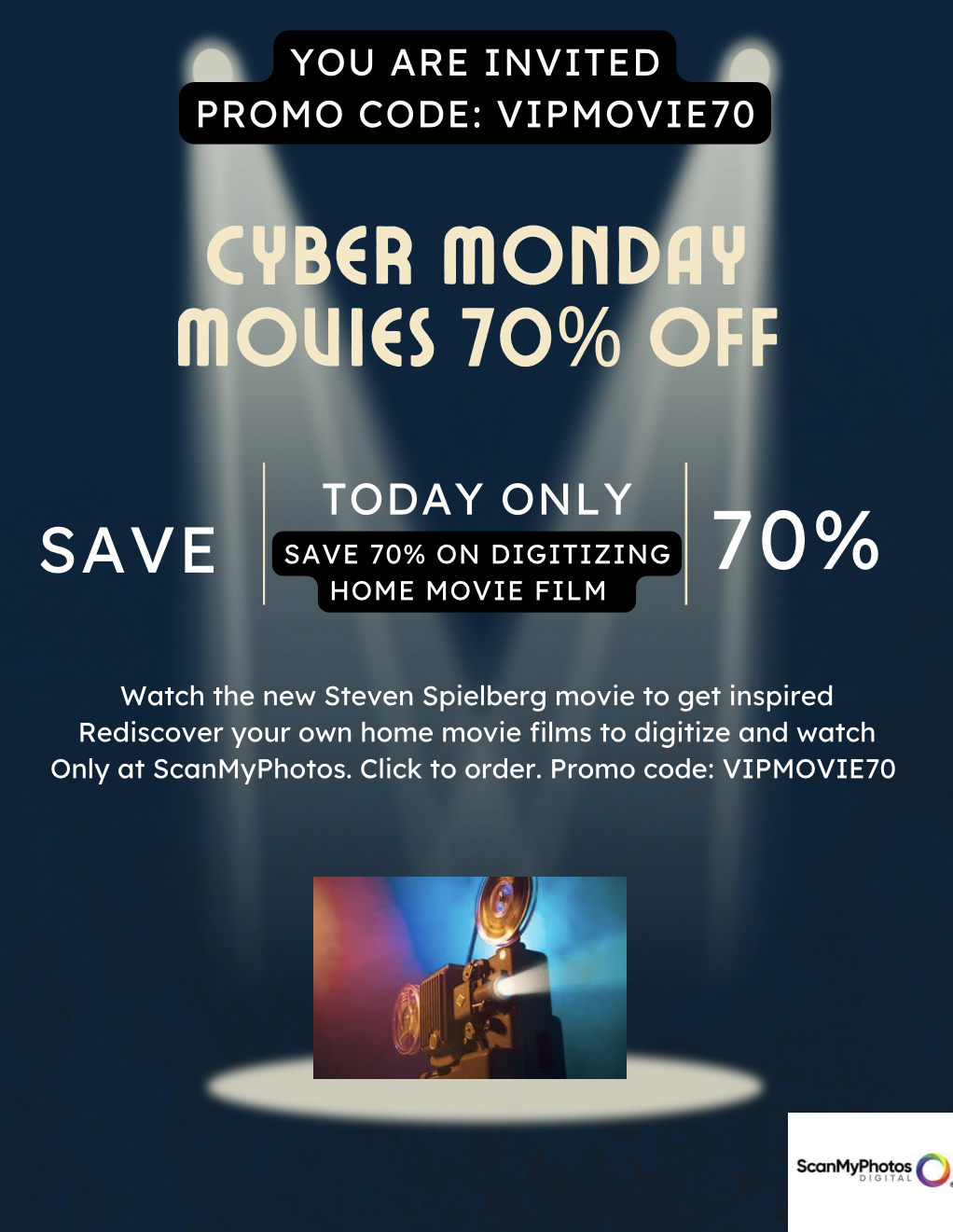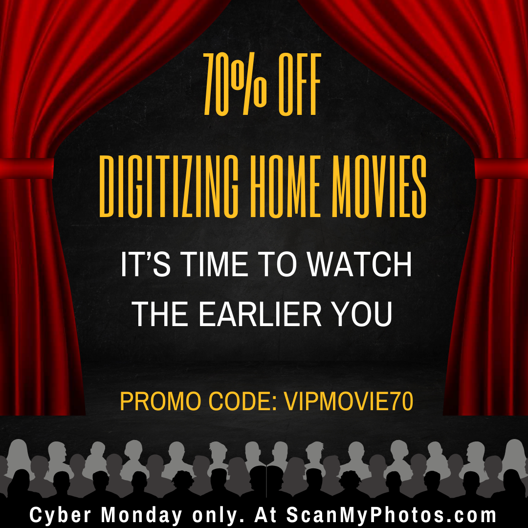 To help, we created a unique Cyber Monday deal for you—save 70% on our individual and fill-the-box 8mm and 16mm home movie scanning.