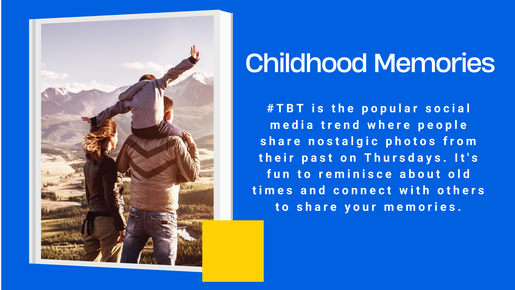 Turn back time for a blast from the past. Dig up embarrassing snapshot gems. Let nostalgia groove. LOL at outdated styles, vintage cars, and old-school tech stuff. Share your cringe-worthy fashion choices. Awkward film camera selfies. Childhood memories with retro board games before computers.