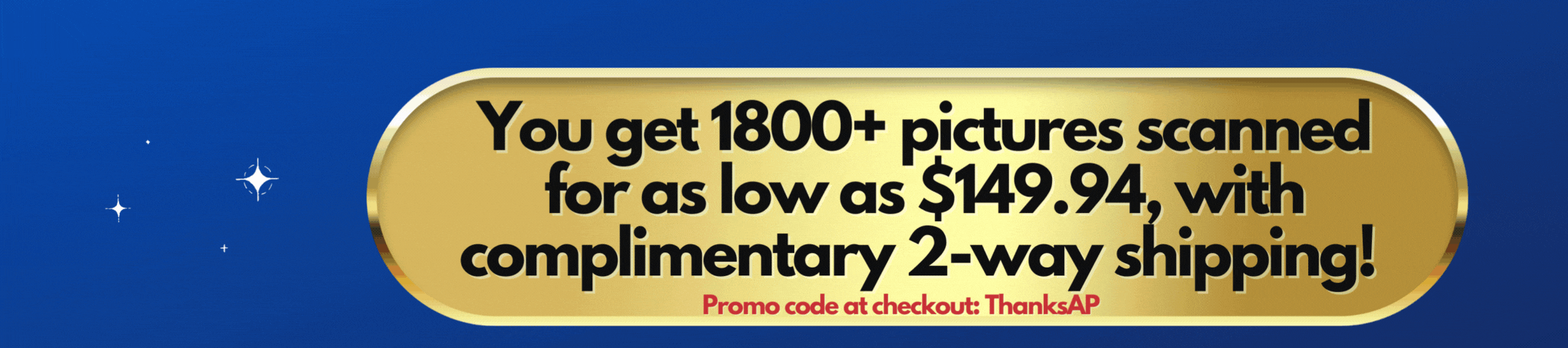 EXTENDED through Sunday because our AP story went viral: 400+ media outlets profiled ScanMyPhotos; you SAVE up to 50%! We are hearing from many who need more time to order, so we extended this special through Sunday. Lock in the savings now. You then have nine months to send in your photos, slides, film, and home movie reels. The most momentous media profile in our 33-year history of safeguarding the nation's photographic history means BIG SAVINGS for you.
