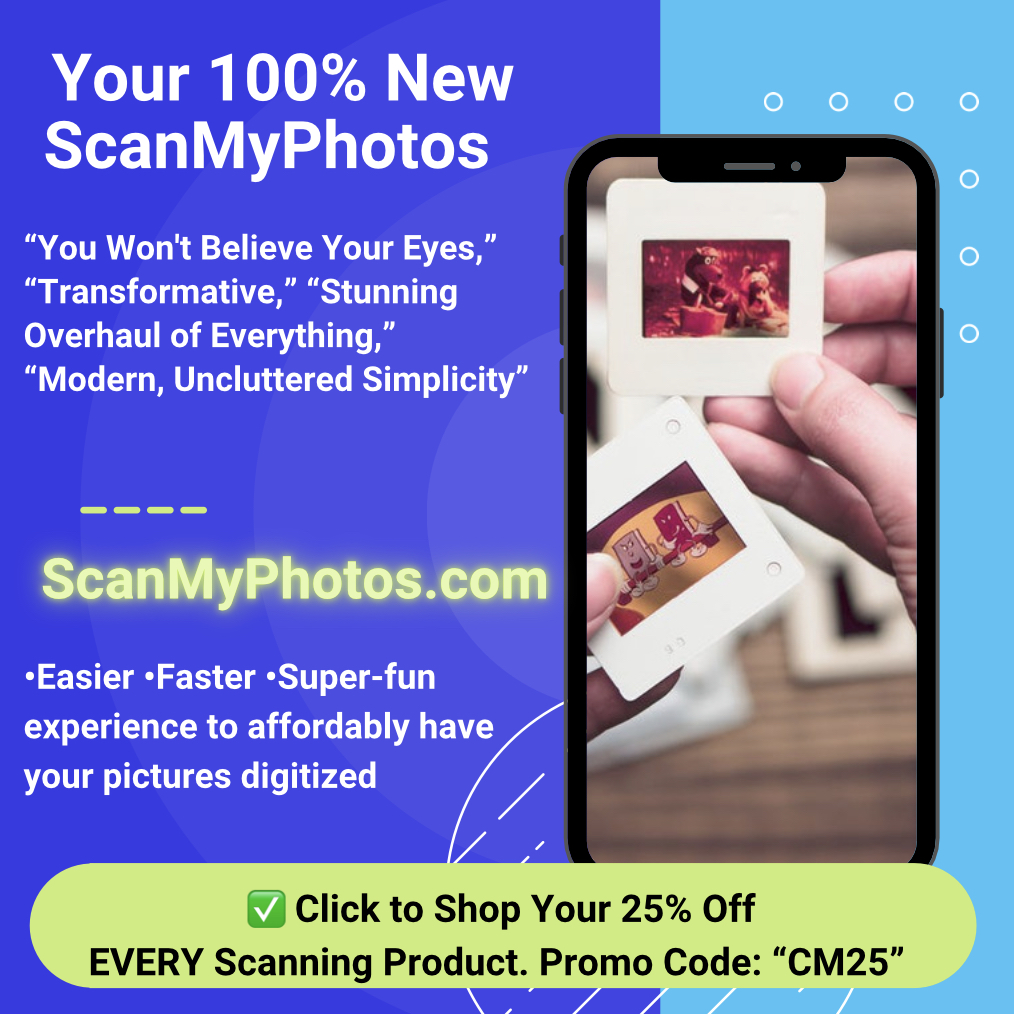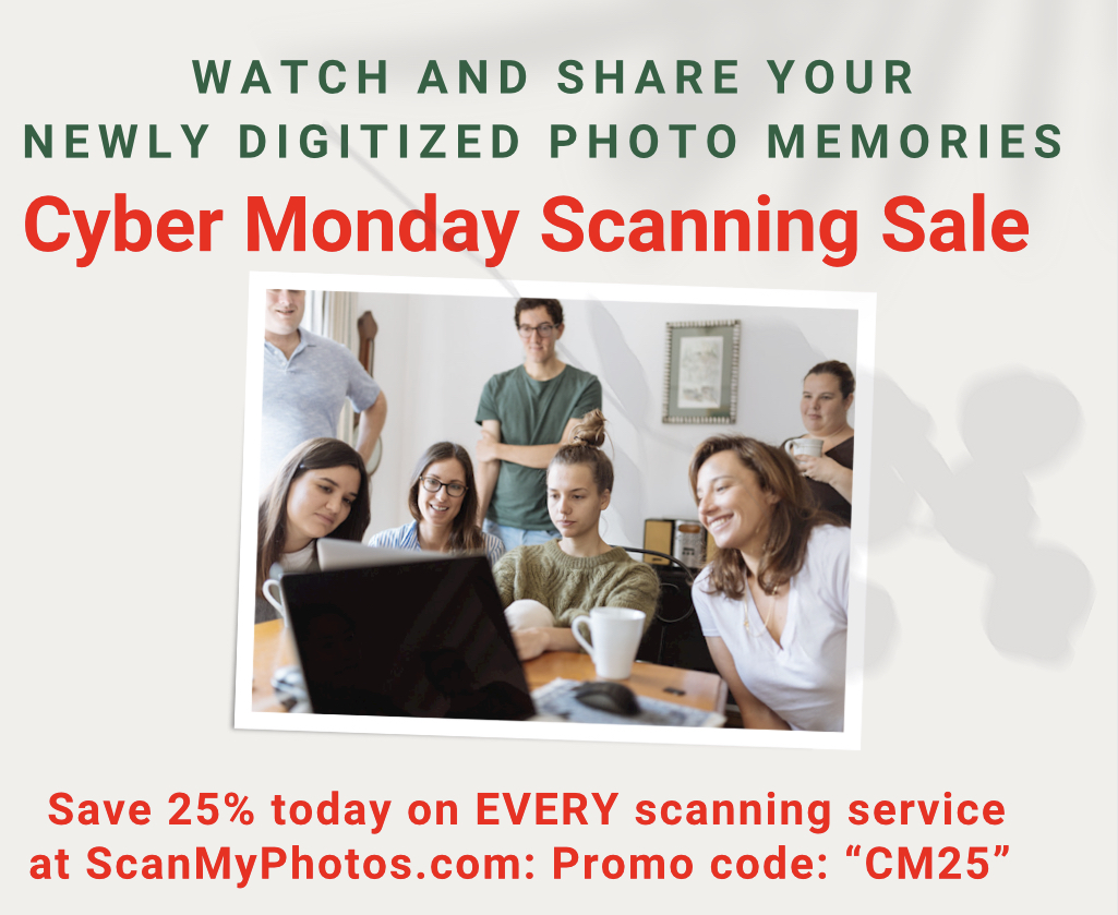 Have you seen the all-new ScanMyPhotos.com? We redesigned EVERYTHING for you. And even added today's Cyber Monday's deal--Save 25% off EVERY photo scanning service. No minimum order size to access.