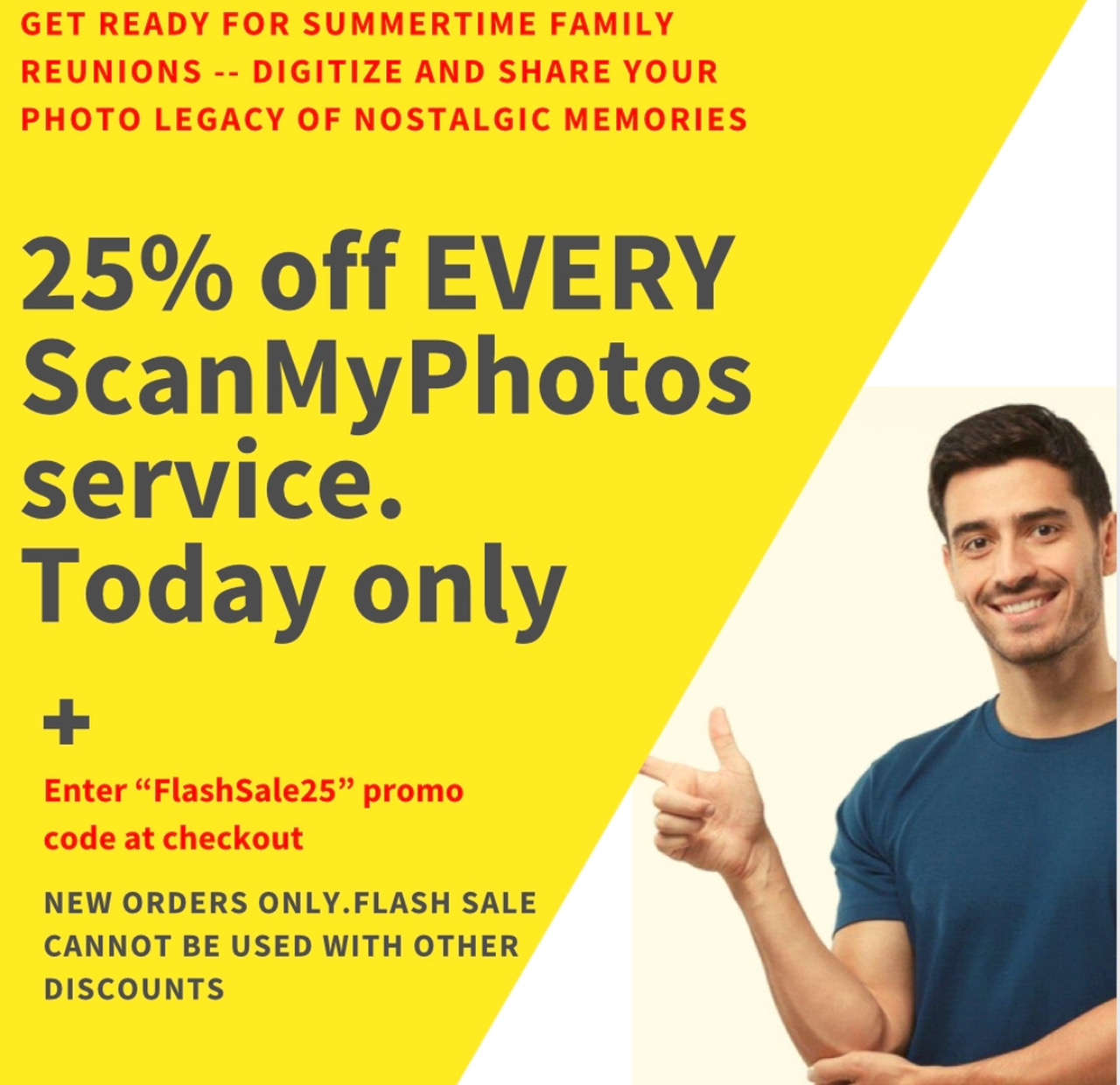 We’re sharing this first-time-ever discount with you. Enjoy this 25% discount on EVERY DIGITIZATION SERVICE TODAY to inspire you and help preserve your family memories in time to share during summertime family reunions