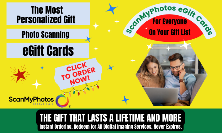 Watch how easy it is to order eGift cards for everyone on your list. The most personalized holiday gift. It lasts a lifetime and more. eGift Cards to digitize photos never expire. No wrapping. Redeem for every ScanMyPhotos.com digitization service.