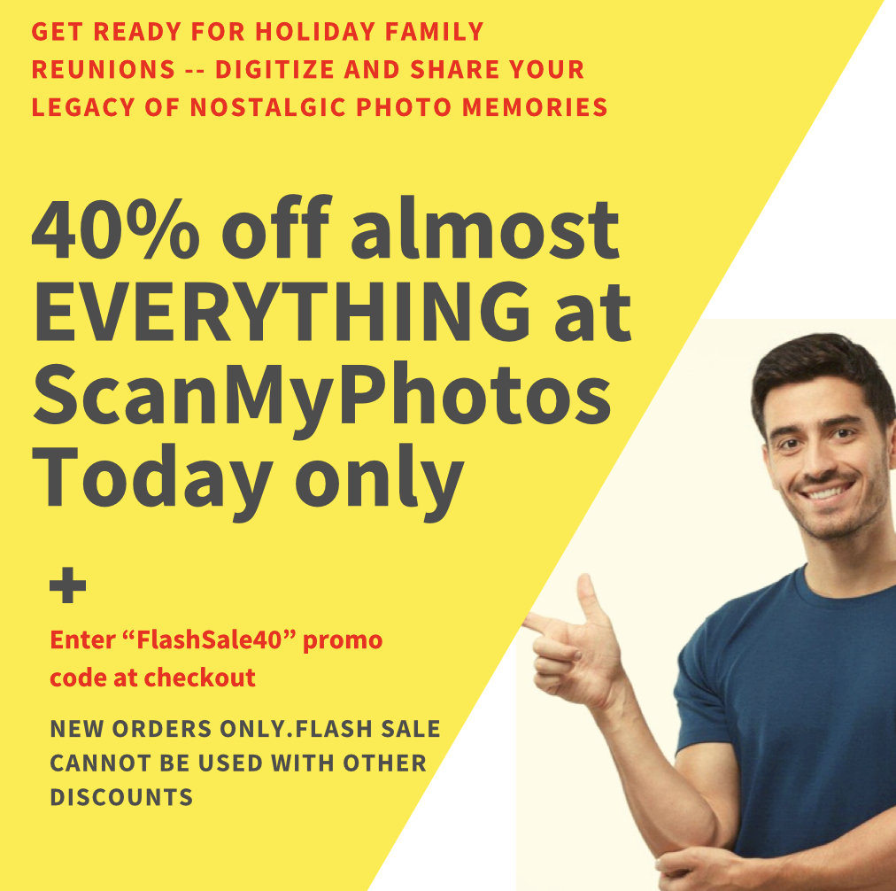 | | HAVE MORE PICTURES, SLIDES, MOVIE FILM, AND VHS TAPES TO SCAN? BILLIONS OF PICTURES ARE DESTROYED EACH YEAR FROM WILDFIRES AND HURRICANES (and from the ravages of time, or a young child with crayons and a scissor--turning snapshots into "art." | | | |
