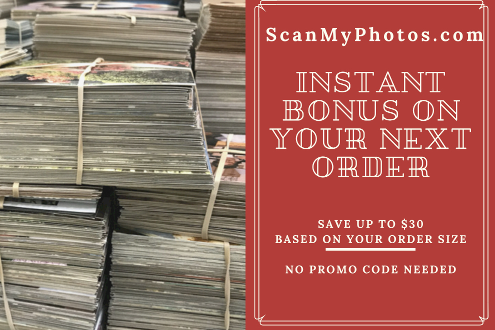 This discount applies to Standard 72 dpi, $170; Social Media 150 dpi, $295; Archival Photo  300 dpi, $310; and the most popular Ultra High-Quality Professional Photo Scanning 600 dpi, $355 per box.