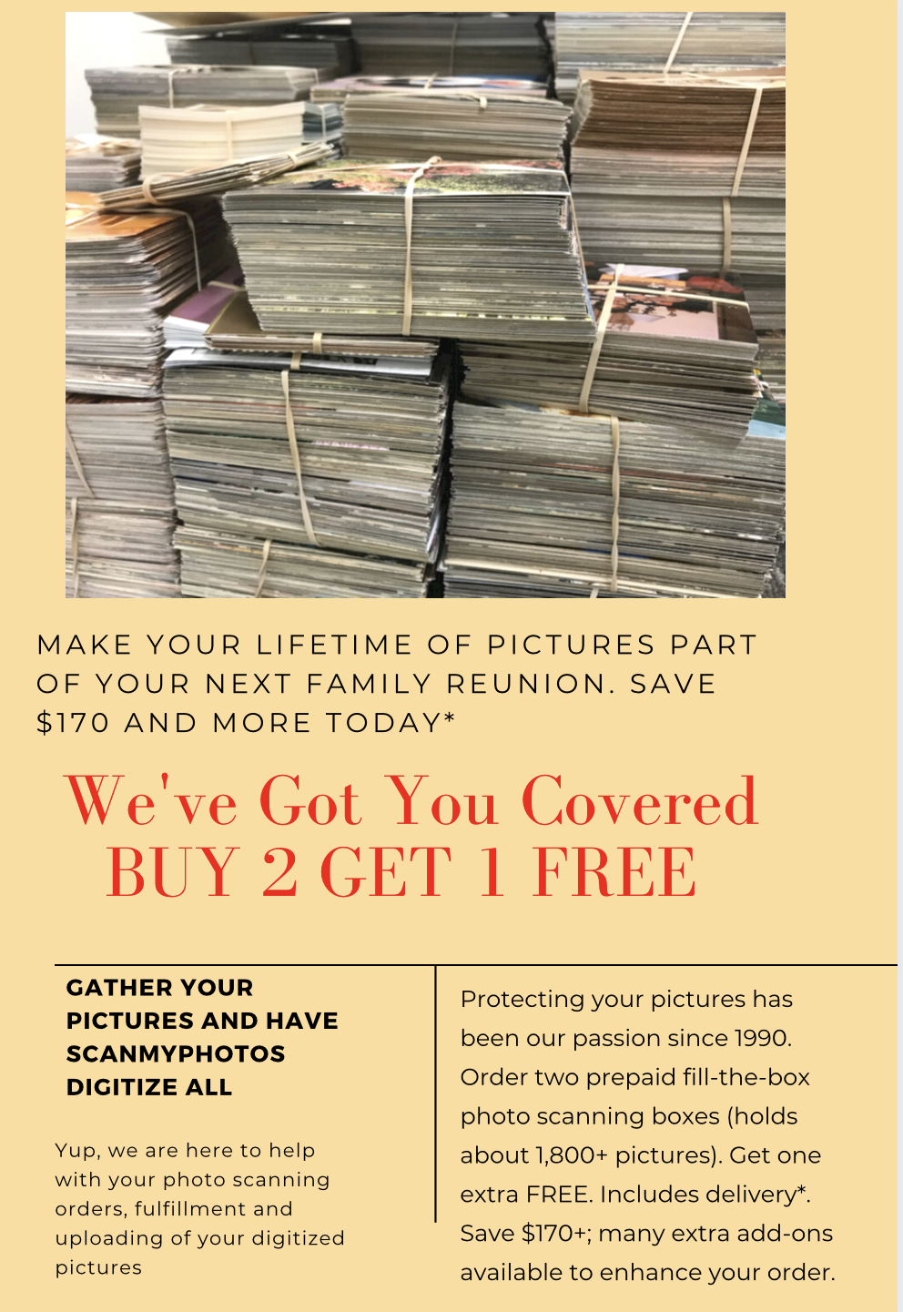 Friend we just unlocked our most popular deal for you. Buy 2 get 1 free photo scanning boxes to help you complete your photo digitizing project.