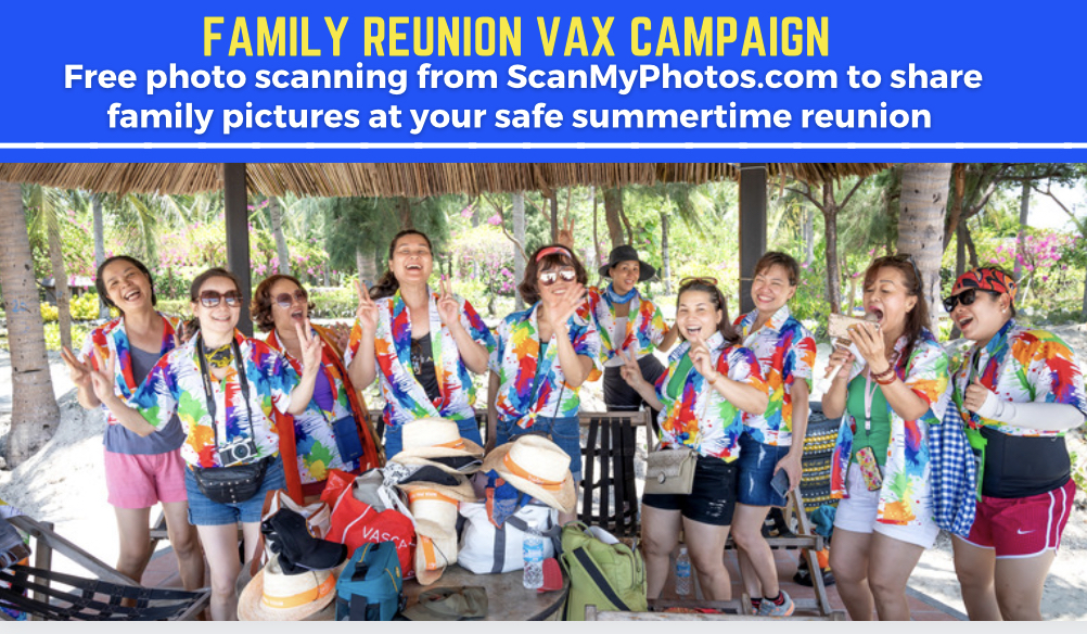 • The Summer of 2021 promises to be the largest family reunion gathering ever. This inoculation perk is a nudge to have safe reunions and get thousands of pictures digitized before reunions.