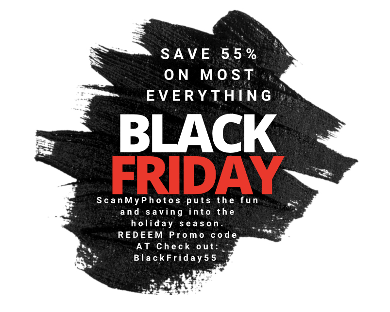 *Save 55% on most scanning services and add-on extras through Friday night (November 25). New orders only. Cannot be applied to other discounts. Excluding FGC, eGift Cards, and Slide Carousel Scanning.Enter this code at checkout: BlackFriday55