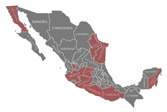 Locations: Widespread, including Jalisco State (including Puerto Vallarta, Chapala, and Guadalajara), Baja California State (including Tijuana, Tecate, and Ensenada), Quintana Roo State (including Cancun, Cozumel, Playa del Carmen, and Tulum), and areas of Guanajuato, Guerrero, Michoacan, Oaxaca, Nuevo Leon, and Tamaulipas States.