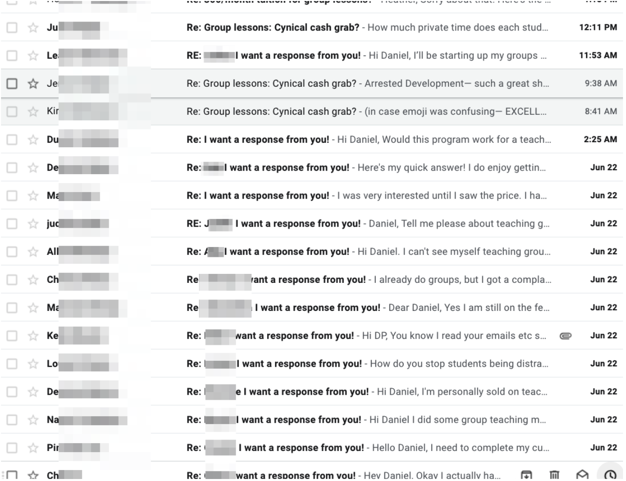 (11:05) Can Successful Group Lessons support a combination approach to lessons, where some lessons are individual and some are group? Has anyone done something really different with their group lessons and still succeeded? (15:50) Would it be difficult to teach acoustic electric guitar in a group setting, since you'd still have the unplugged acoustic sound in the room even with headphones on?