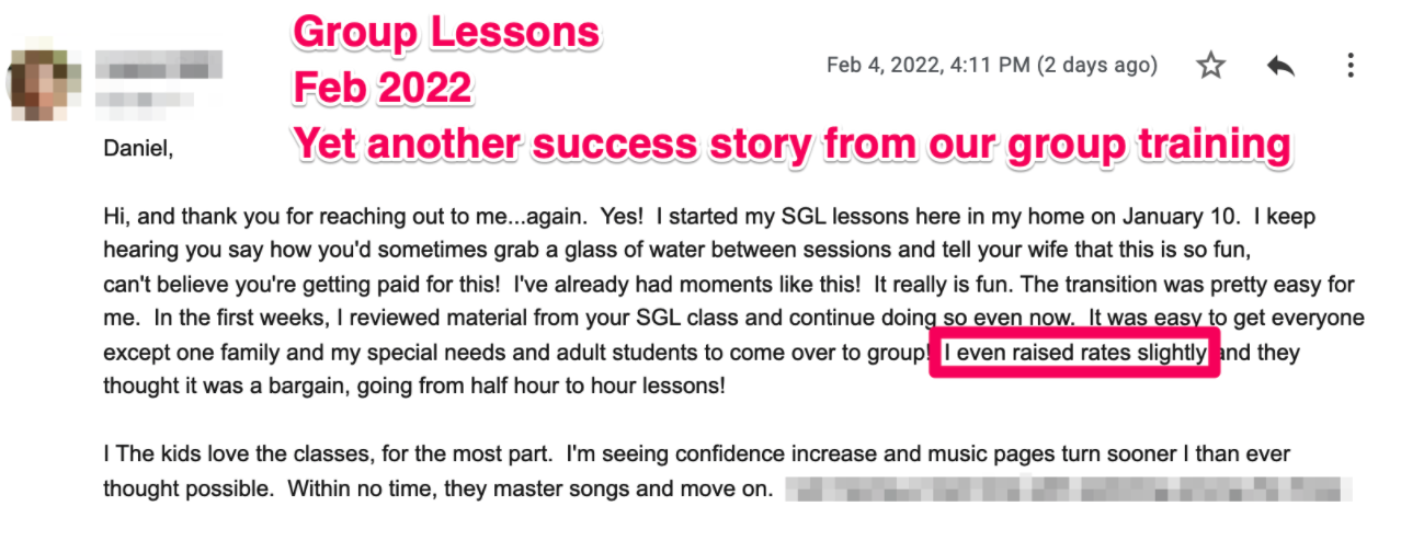 Figure out how to adapt a normal teaching method to a group method Figure out how to balance the learning needs of 5 kids simultaneously Figure out how the group changed my admin, my scheduling, my billing, my rates, and my marketing Figure out how to get parents on board Figure out how to set up my space And many more things