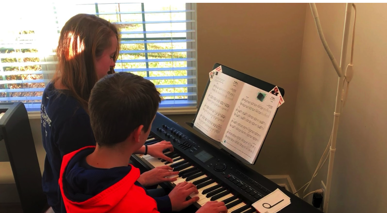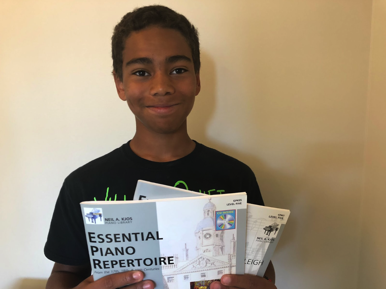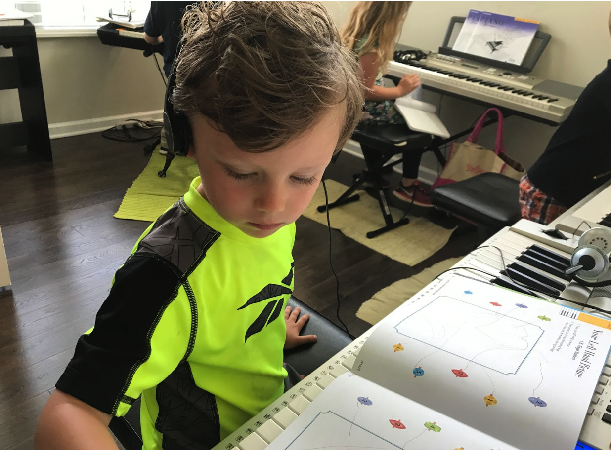 I was even able to see older students and work with them on intermediate music in the context of my multi-level groups… like my nephew here who was halfway through the Keith Snell Repertoire Series when this photo was taken