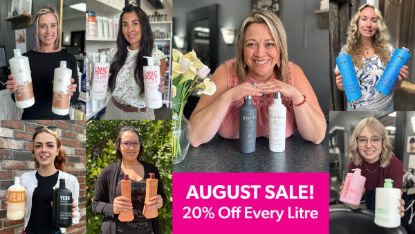 We know how much you love to pamper your hair, so we're offering a 20% discount on all one-litre sized shampoo and conditioner products at our salon.