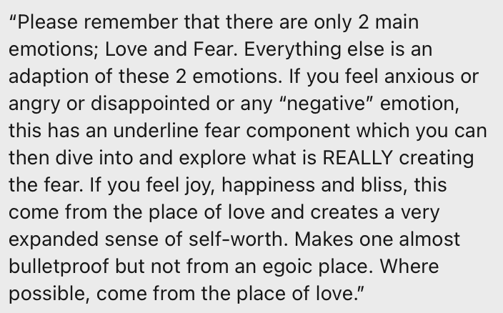 I have since adopted this way of thinking and can 100% vouch for the 'bulletproof' feeling it gives. When I lead with 'love', I am open, curious and accepting. I am not drained of energy and my self-talk is mostly positive.