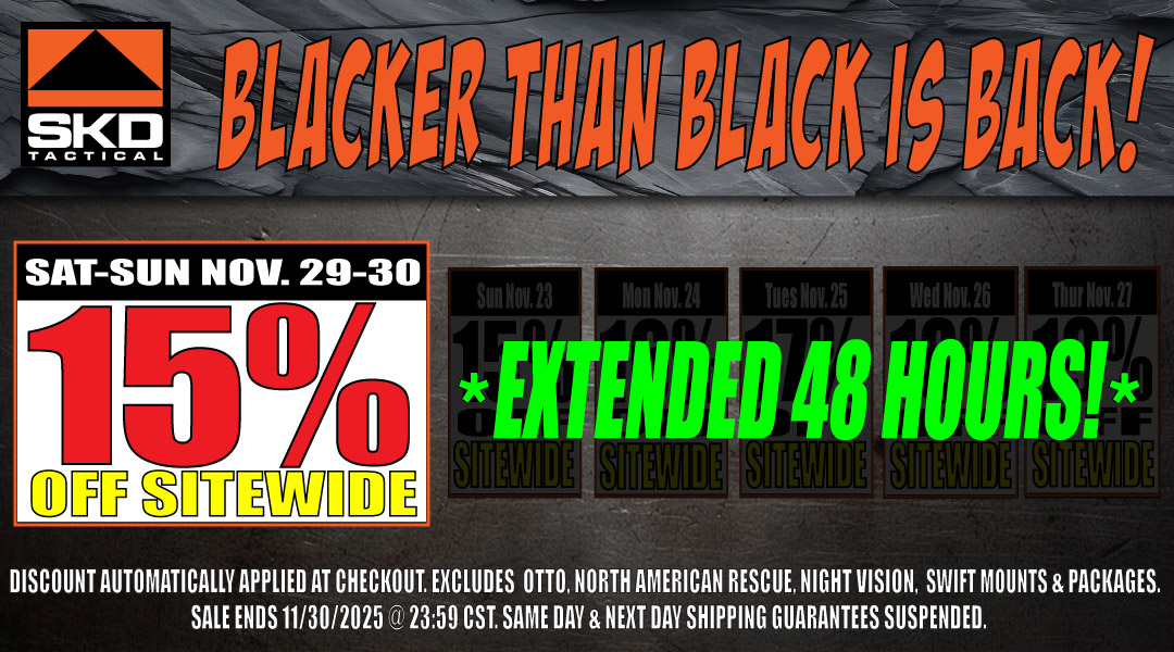 *Excluding Otto, North American Rescue, Swift Mounts, Night Vision & Packages. Shipping guarantees are suspended during the sale. Orders will ship on a First Come First Served basis.