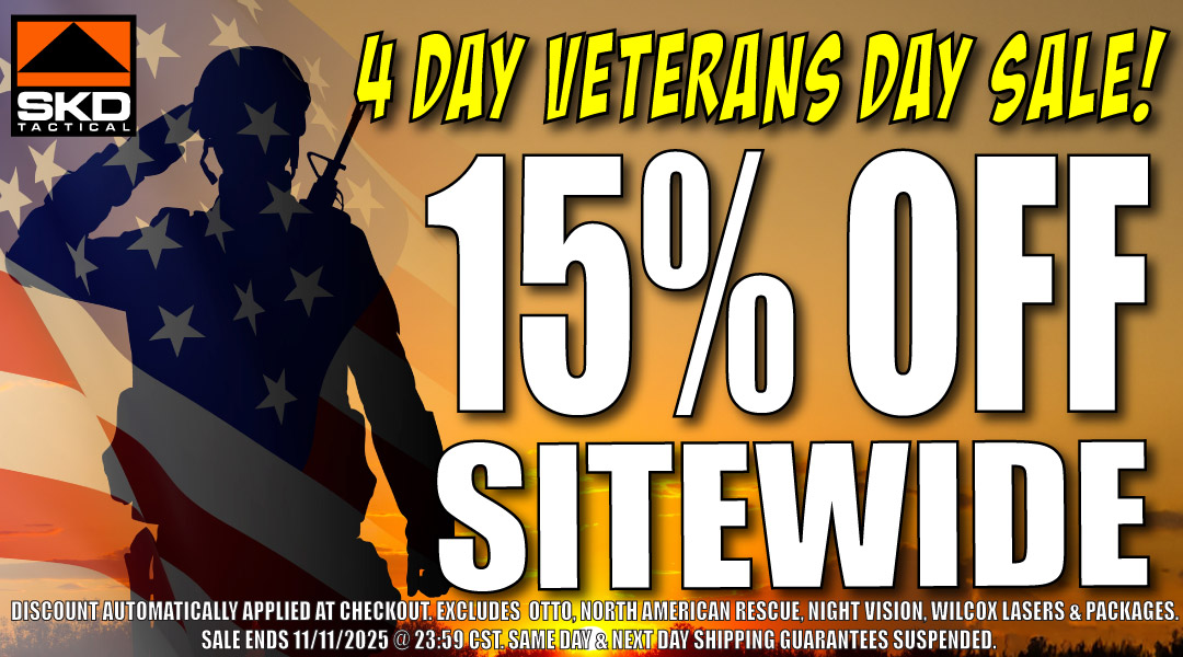 *Excluding Otto, North American Rescue, Wilcox Lasers, Night Vision & Packages. Shipping guarantees are suspended during the sale. Orders will ship on a First Come First Served basis.