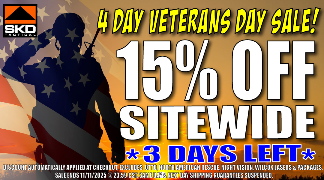 *Excluding Otto, North American Rescue, Wilcox Lasers, Night Vision & Packages. Shipping guarantees are suspended during the sale. Orders will ship on a First Come First Served basis.
