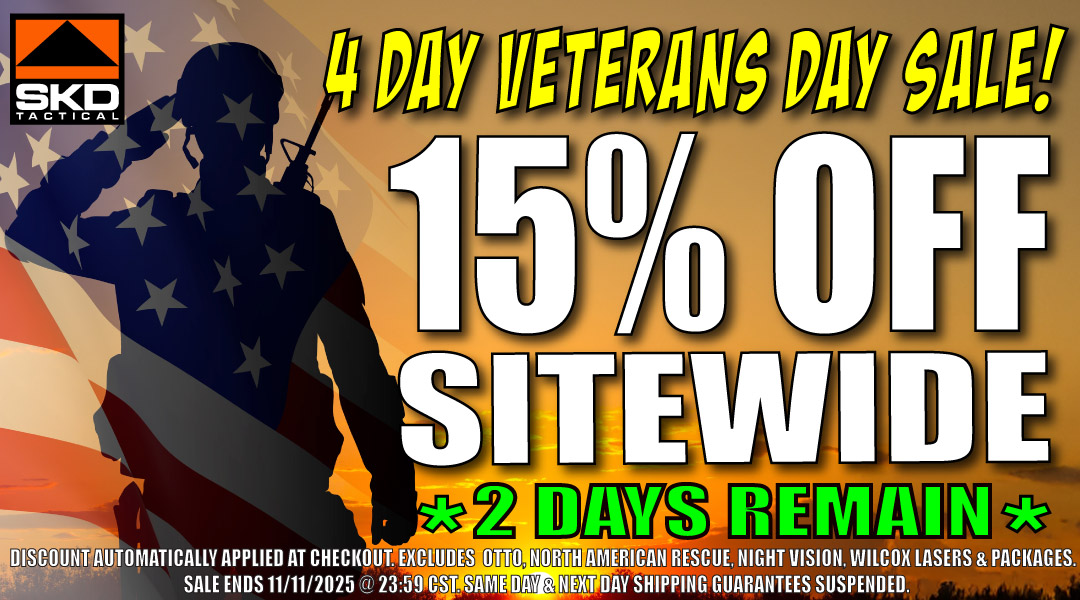 *Excluding Otto, North American Rescue, Wilcox Lasers, Night Vision & Packages. Shipping guarantees are suspended during the sale. Orders will ship on a First Come First Served basis.