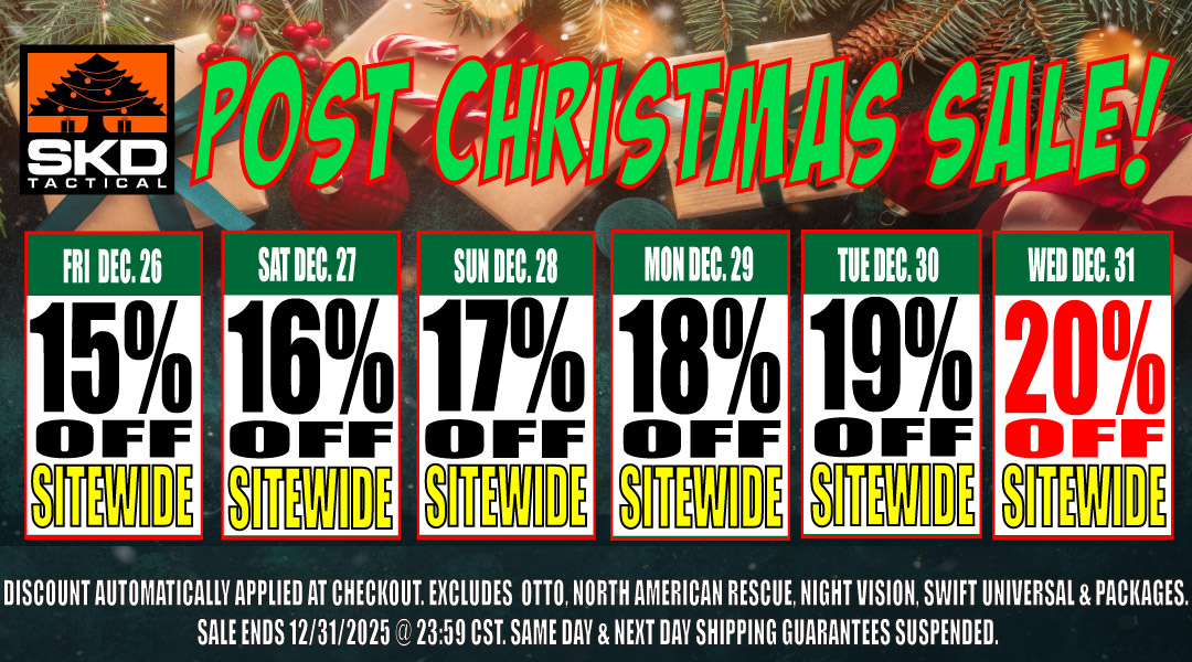 *Excluding Otto, North American Rescue, Swift Universal, Night Vision & Packages. Shipping guarantees are suspended during the sale. Orders will ship on a First Come First Served basis.