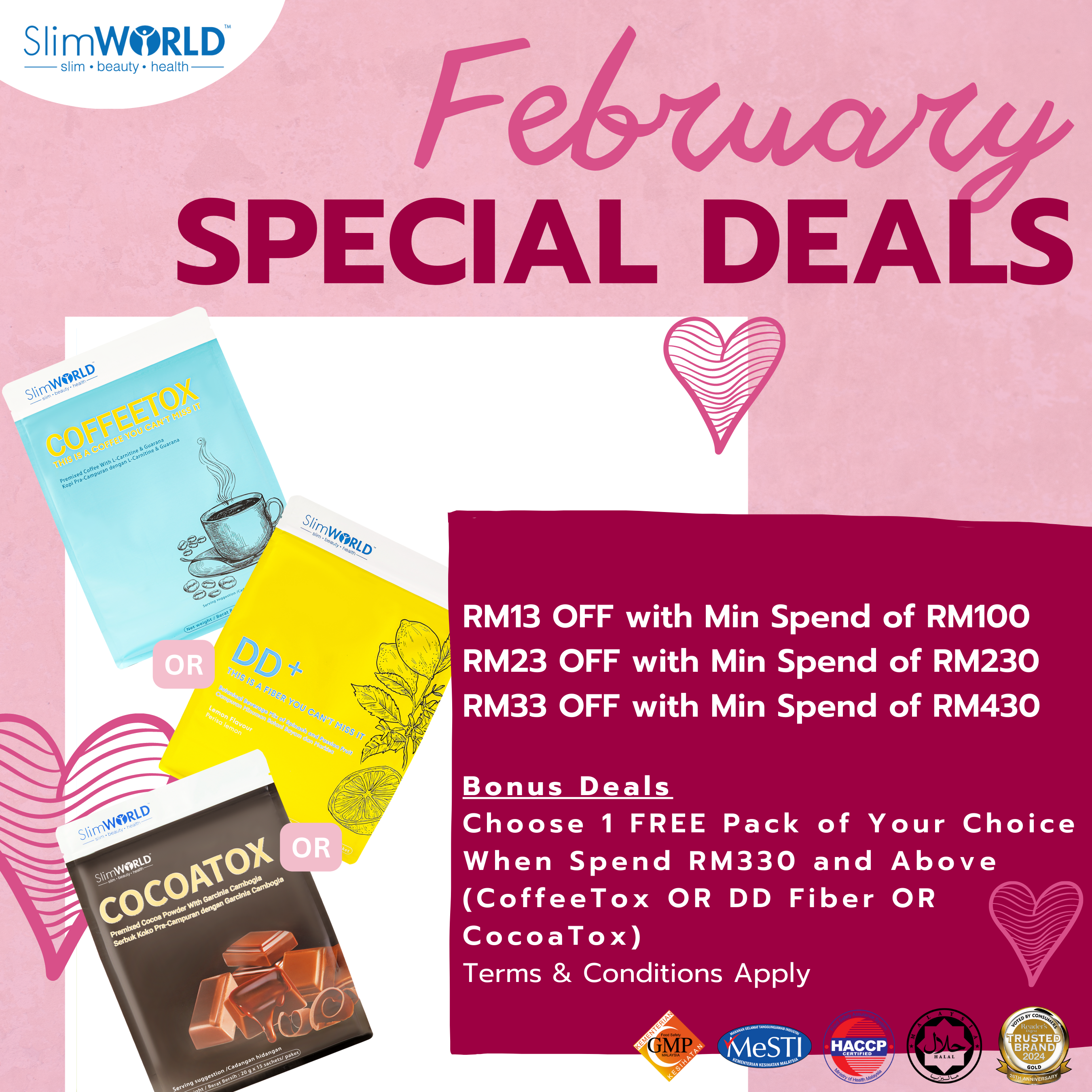 Enjoy SlimWorld's February Deals up to RM33 OFF with Minimum Spending of RM430 only