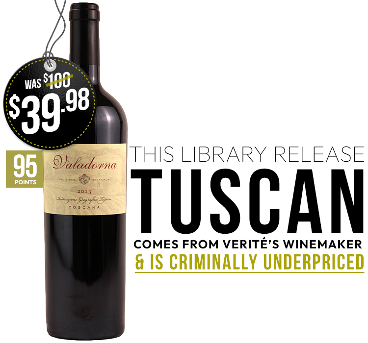 Now, of course, the best part. Current vintages of Valadorna retail for $100 a bottle so, in theory, this library selection should cost more, right? Nope, we’re rolling this one out at an incredible $39.98 a bottle while stocks last.