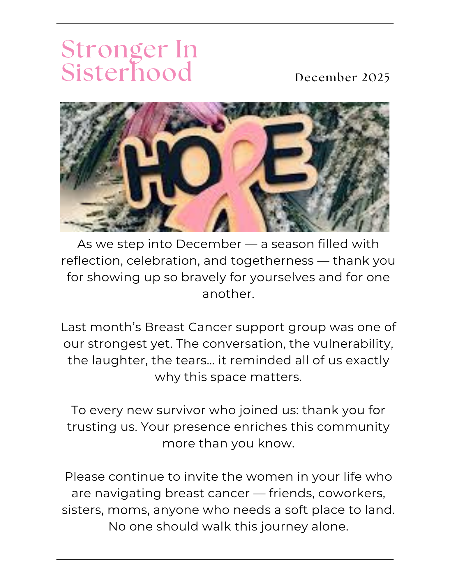 Subject: Stronger in Sisterhood