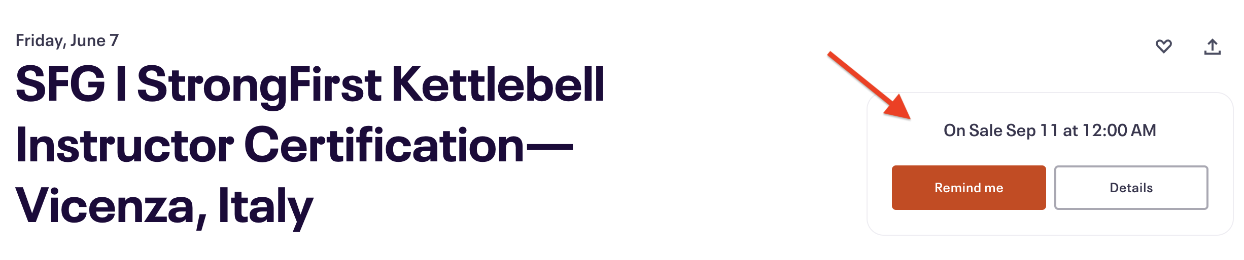 As you know, your licensed Certifications and Special Events go live on the StrongFirst website, and you may open registrations, 9 months prior to their date, according to the tiered price calculator.