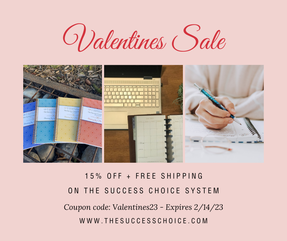 We are sharing the love with a 15% discount until February 14, 2023. Use the Coupon code: Valentine23. Show yourself or someone you care about some love and give the gift of growth and joy this year with The Success Choice System. |