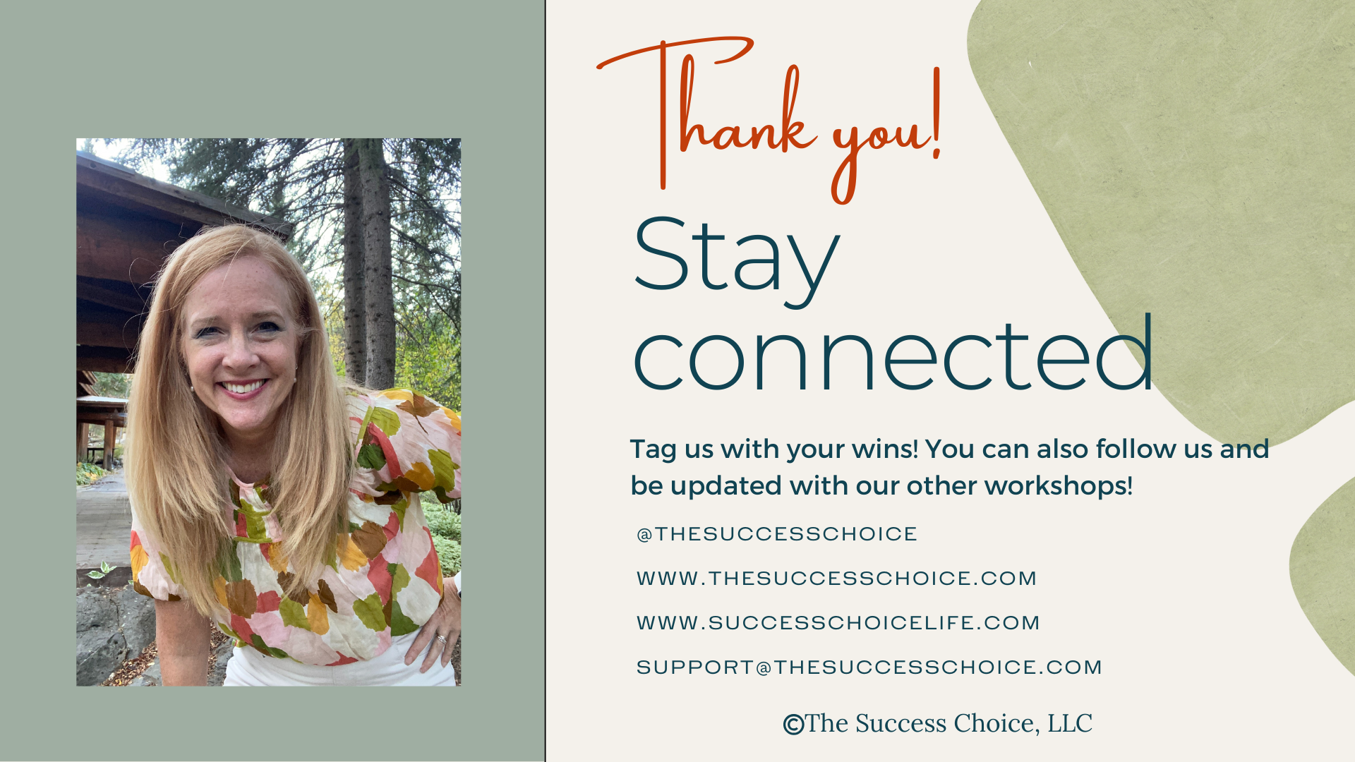 Additionally, keep an eye on your inbox for an exciting opportunity to join the upcoming Success Choice Coaching program. We are thrilled to offer this chance for further growth and empowerment.