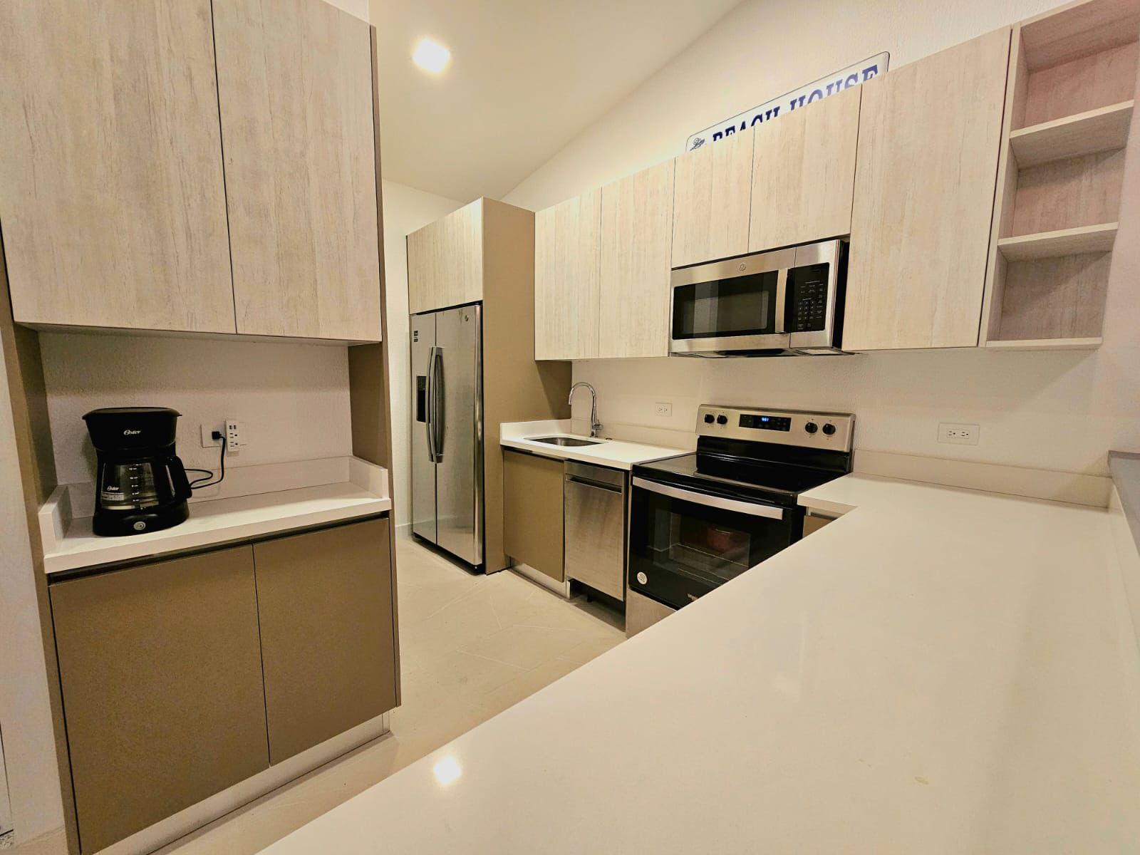| The unit features 2 bedrooms, 2 full bathrooms, and a brightmezzanine area ideal for an office or extra sleeping space. |