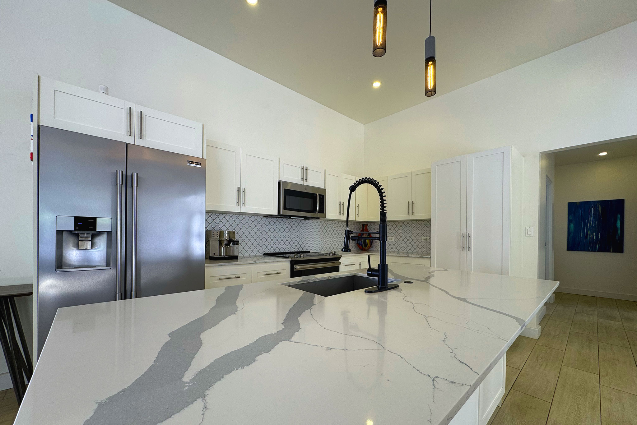 Inside this 4 bedroom, 4 bathroom, concrete beauty, you’ll find a separate, fully equipped studio suite that’s perfect for accommodating guests or generating rental income. The home, designed to North American standards, features a stunning open layout with oversized rooms and soaring ceilings.