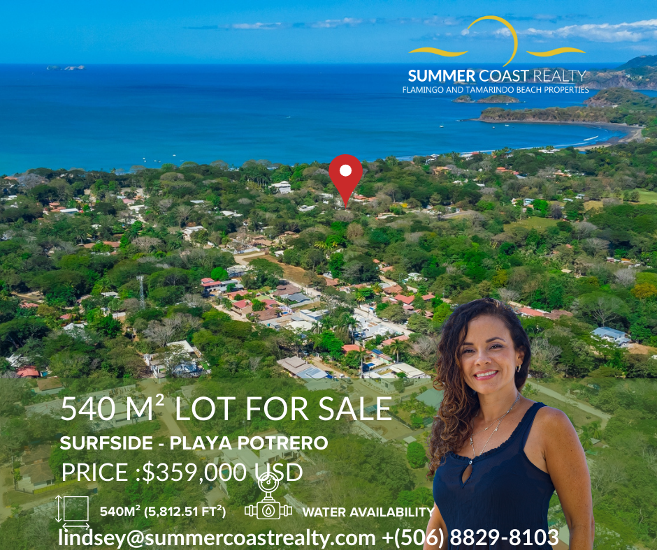 Located on Calle Oliva in Surfside, Playa Potrero, this 540 m² residential lot is just steps from the beach, making it an excellent opportunity to build a home in one of the area’s most desirable coastal communities.