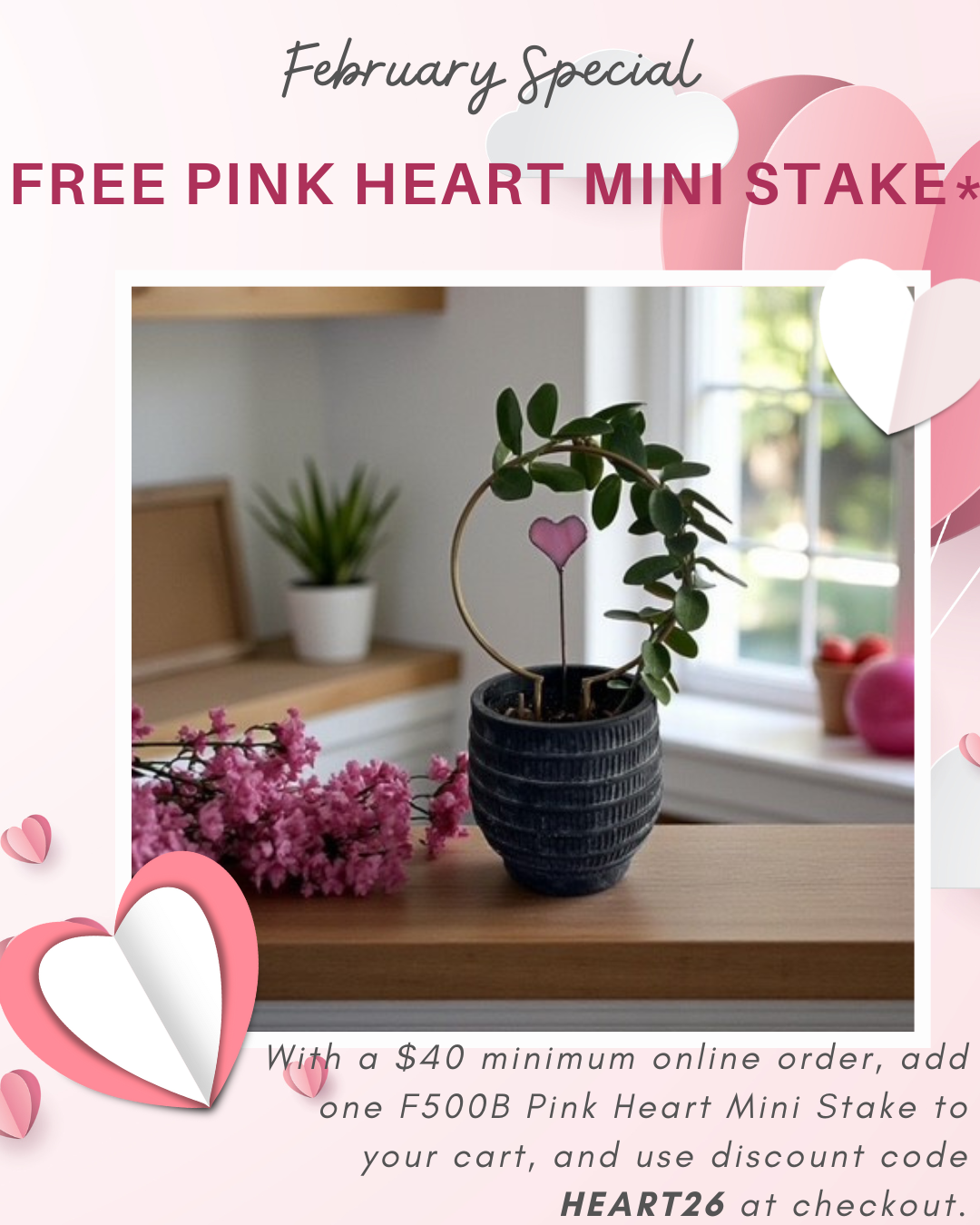 | | Spend $40.00, get 1 Pink Mini Plant Stake FREE With a $40 minimum in your cart, ADD (1) F500B Pink Mini Heart to your cart. Then Use code: HEART26 at checkout in the discount code box. Offer valid Feb 12, 2026 - Feb 15, 2026. Free Shipping Applied to orders reaching $125+ after discount code applied. $40 minimum does not include shipping or sales tax. Orders must include (1) F500B and discount code HEART26 to be eligible. Carts will not be edited once submitted for discount code. One discount code per order. Thank you ❤ | | | |