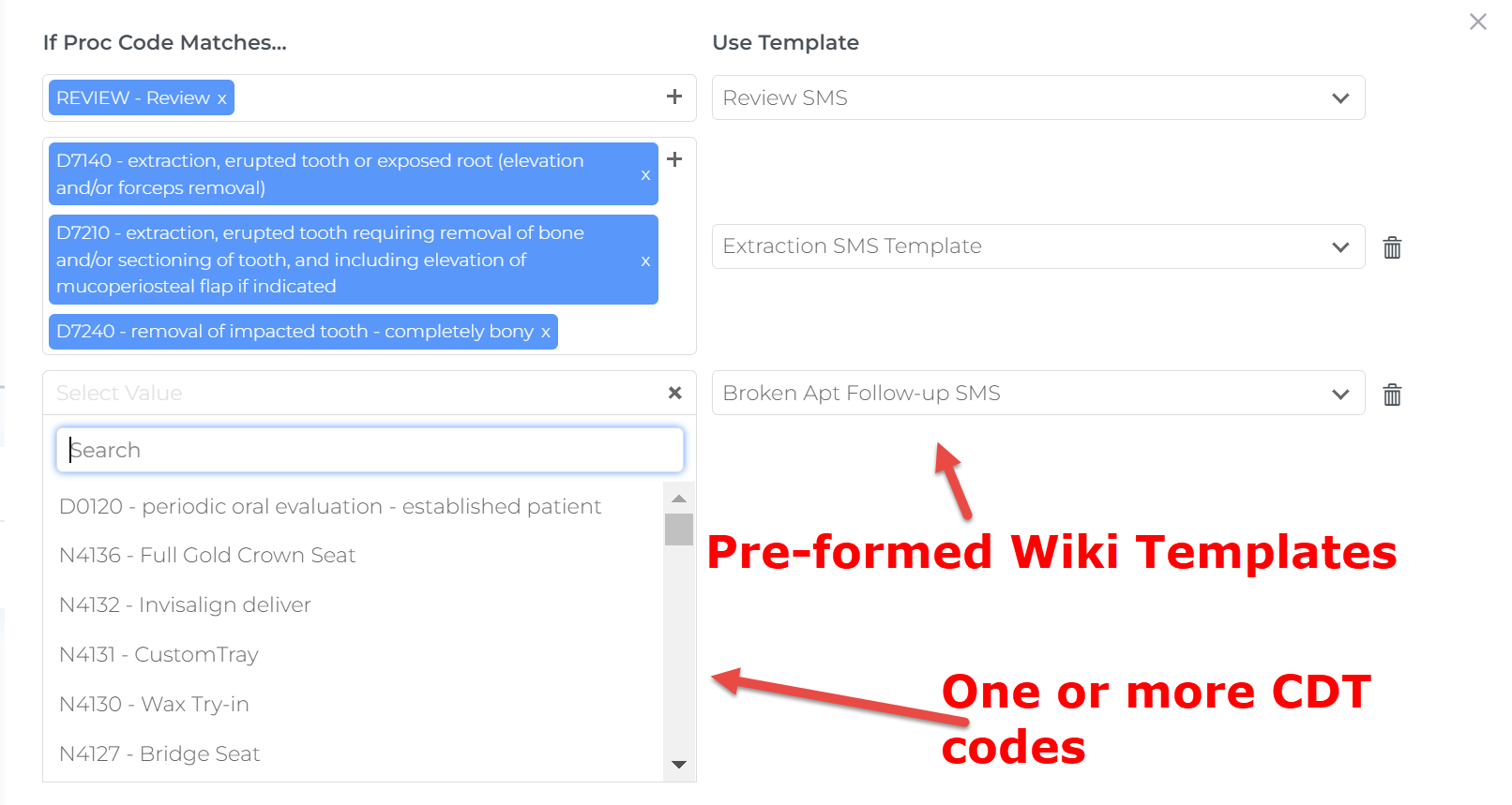 For example, if you're on Recall follow-up panel, you should already have a Recall follow-up templates preselected for you.