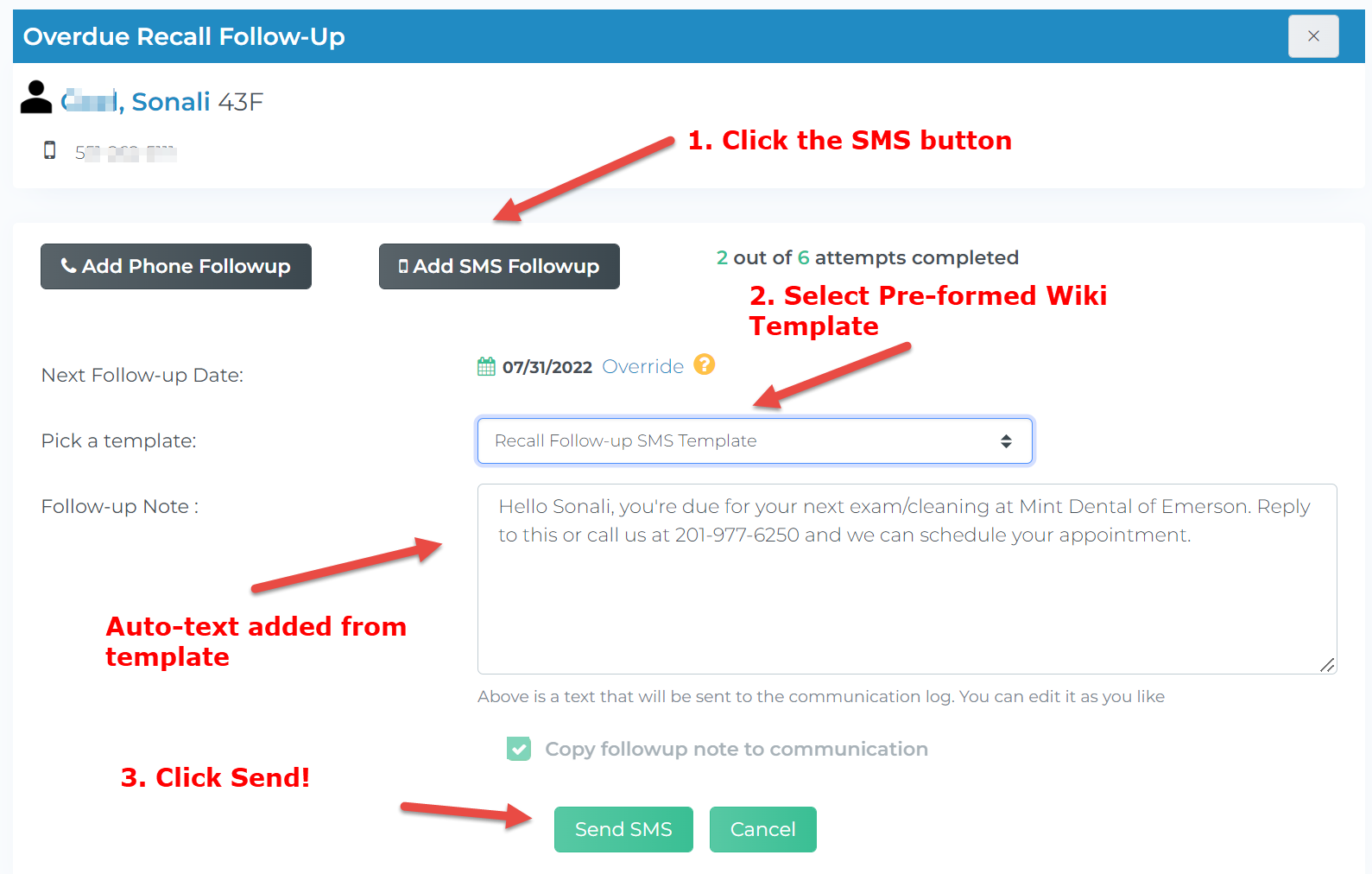 You can now send SMS follow-ups to patients for Recall, Unscheduled Tx, Patient Balances, and Broken Appointments.
