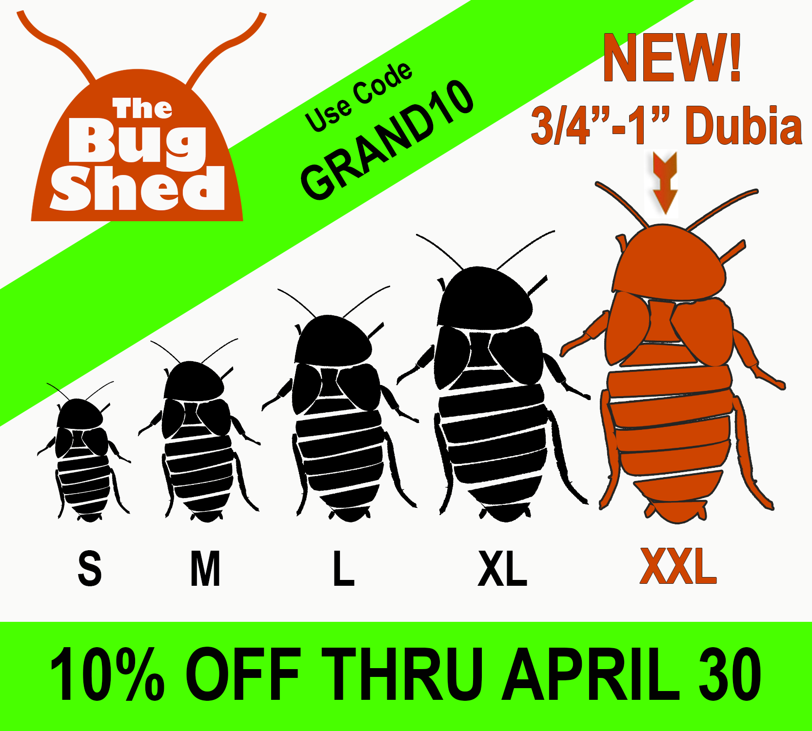 We've updated inventory for this week and we are pleased to be now offering XXL 3/4"-1" dubias in 100 ct cups. Supplies are limited, so if you want them order quick!