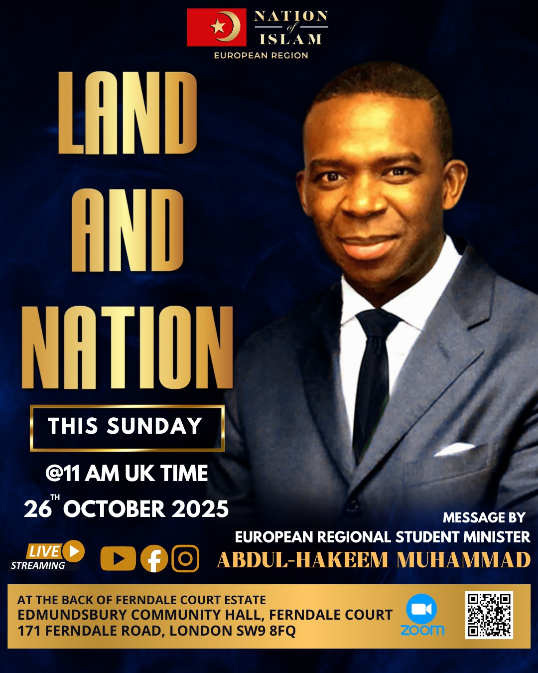 You are receiving this email as you attended or registered for an event or purchased a product associated with the Nation of Islam European Region (such as public meetings, Community Question Time, Spiritual Injection, FOI & MGT events, The Final Call European Edition, conferences & workshops, eBook purchases & historic petitions). If you do not wish to be on our mailing list, please click unsubscribe below. Thank you!