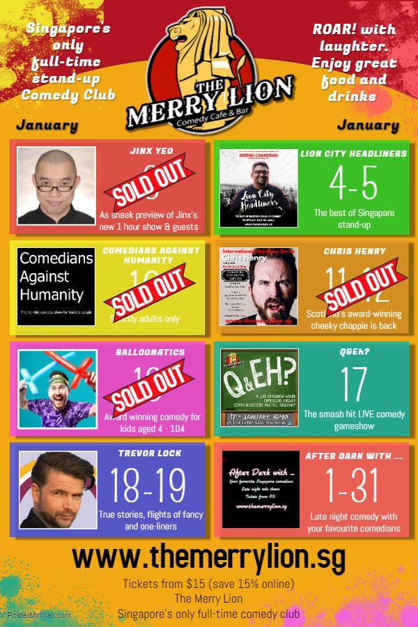 Subject: There are Lots of comedy shows in Singapore in January. Want to go? The best of them are listed here.