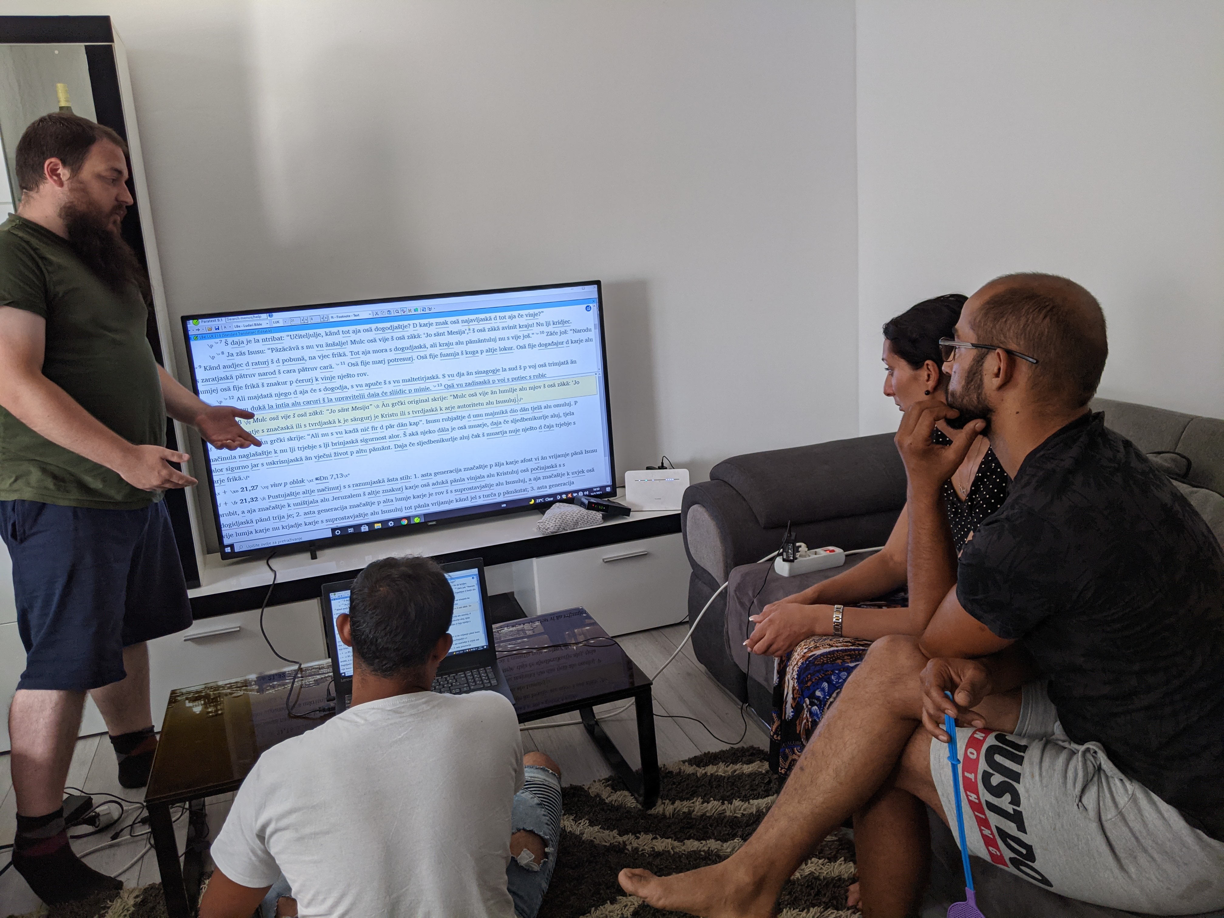 After the testing, we had a late supper at Zoki and Stanoje’s house in the Roma village and talked about the needs and possibilities for the translation in the Ludari language to proceed farther with more books of the Bible after Luke is finished.