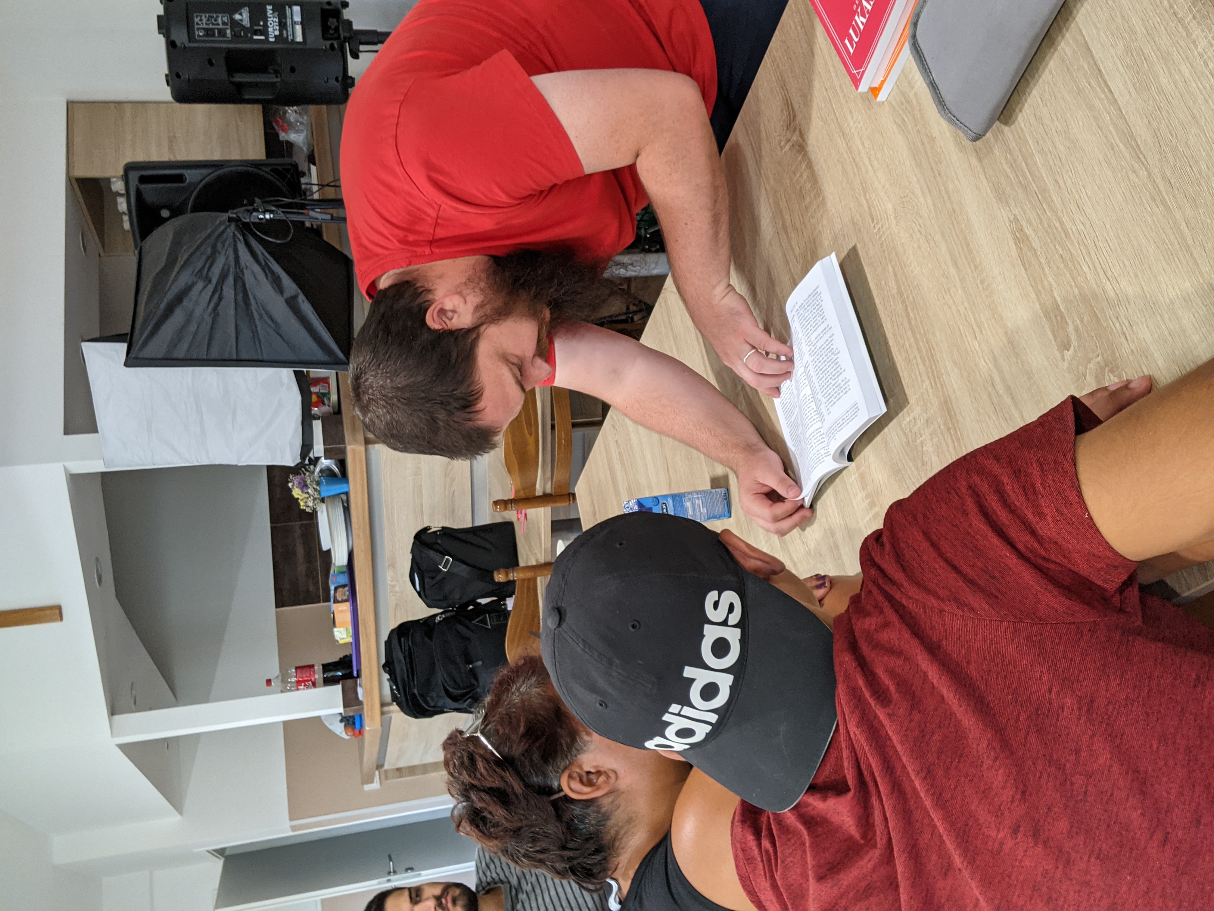 After that, we met at the Baptist Church where we used to attend, to do what is called “field testing” or “community checking”. This is where we have speakers of the language who have never heard our translation before, gather together and spend several hours with us listening to and reading our draft translation and hearing their feedback and suggestions.
