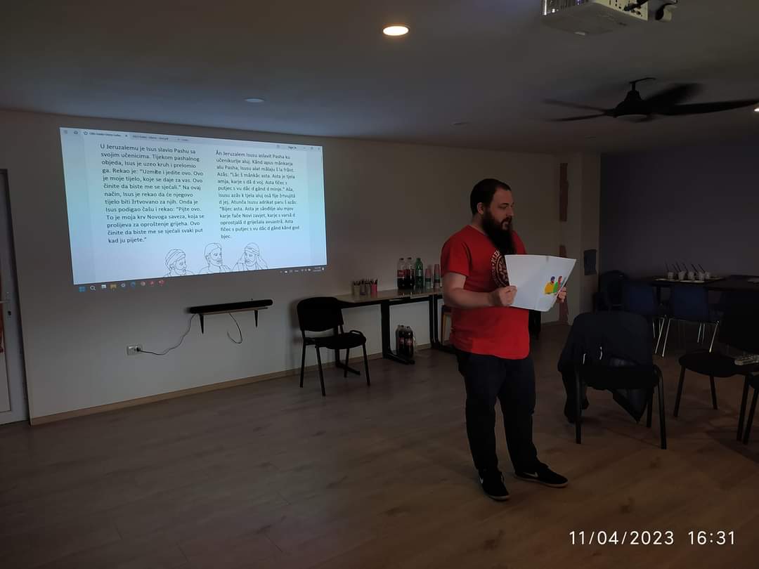 This week we were translating Peter’s sermon in Acts 2 in the Gurbet (Roma) language, where it says, “But God knew what would happen, and his prearranged plan was carried out when Jesus was betrayed. With the help of lawless Gentiles, you nailed him to a cross and killed him. But God released him from the horrors of death and raised him back to life, for death could not keep him in its grip!” (vv. 23b-24) The translators were so excited about how these verses fit so perfectly with their Easter celebrations this week. | | | | | | Our teammates in Croatia have been teaching the Easter story in the Roma village. It is so exciting to hear that they read the story in the Ludari (Roma) language and had coloring pages with it in their language (pictured above)!