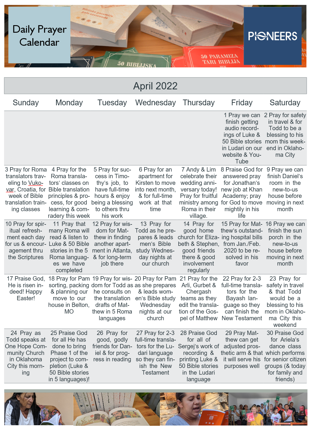 April 19 Pray for wisdom for Todd as he consults on the translation drafts of Matthew in 5 Roma languages